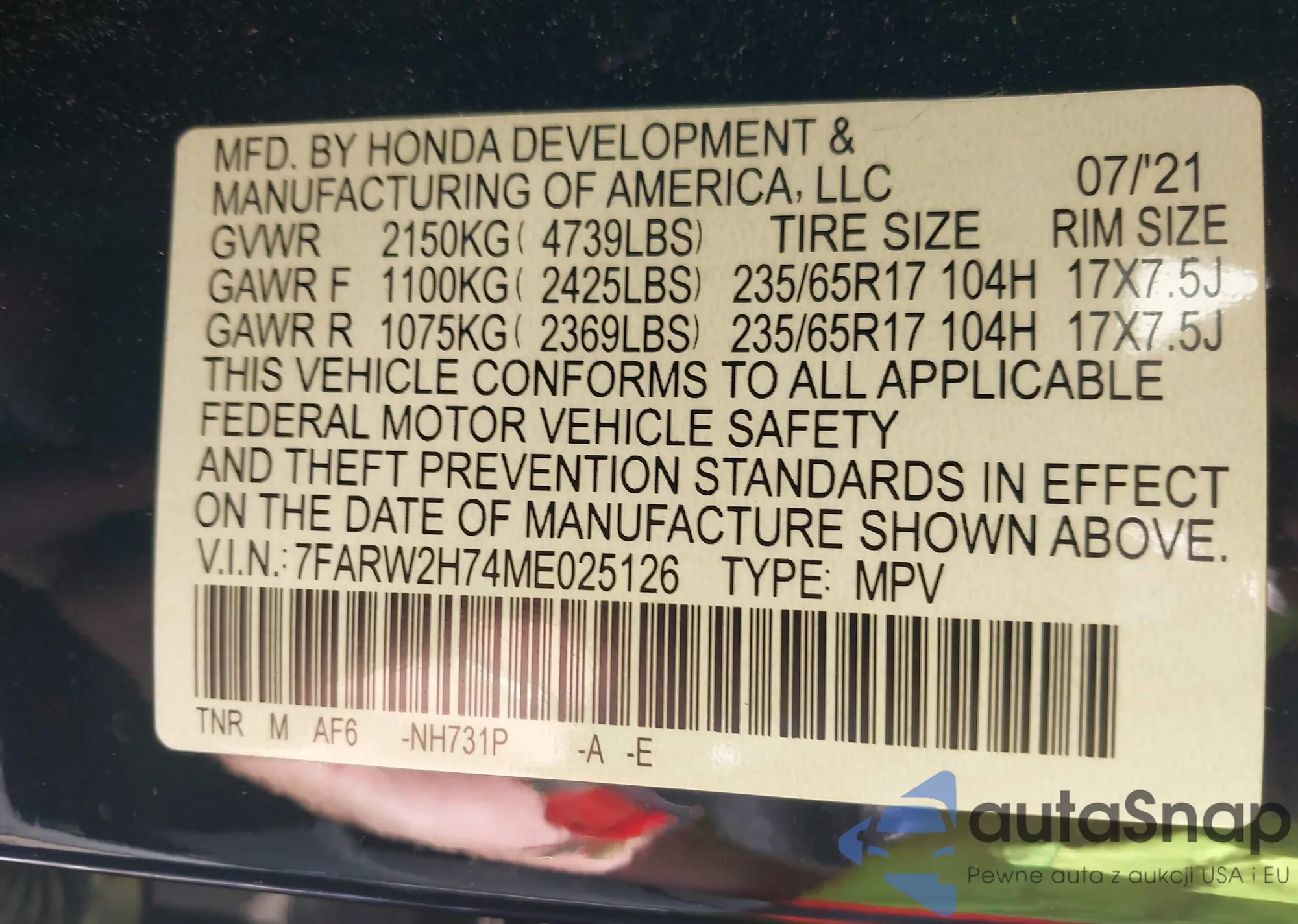 VIN: 7FARW2H74ME025126