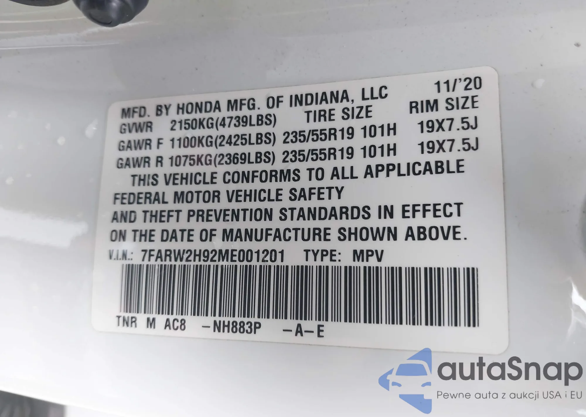VIN: 7FARW2H92ME001201