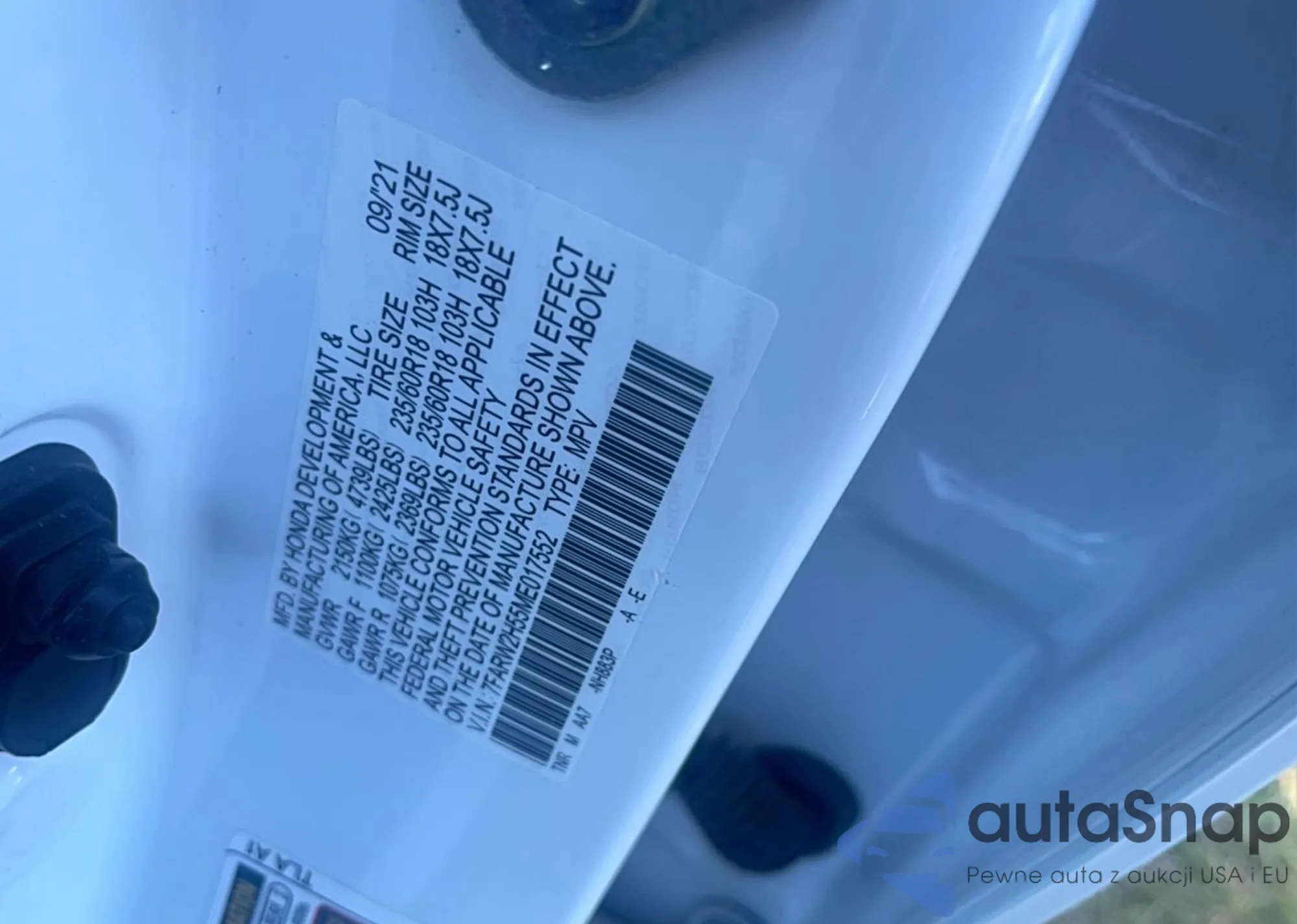 Honda CR-V 2021 – История автомобиля (продан на COPART)