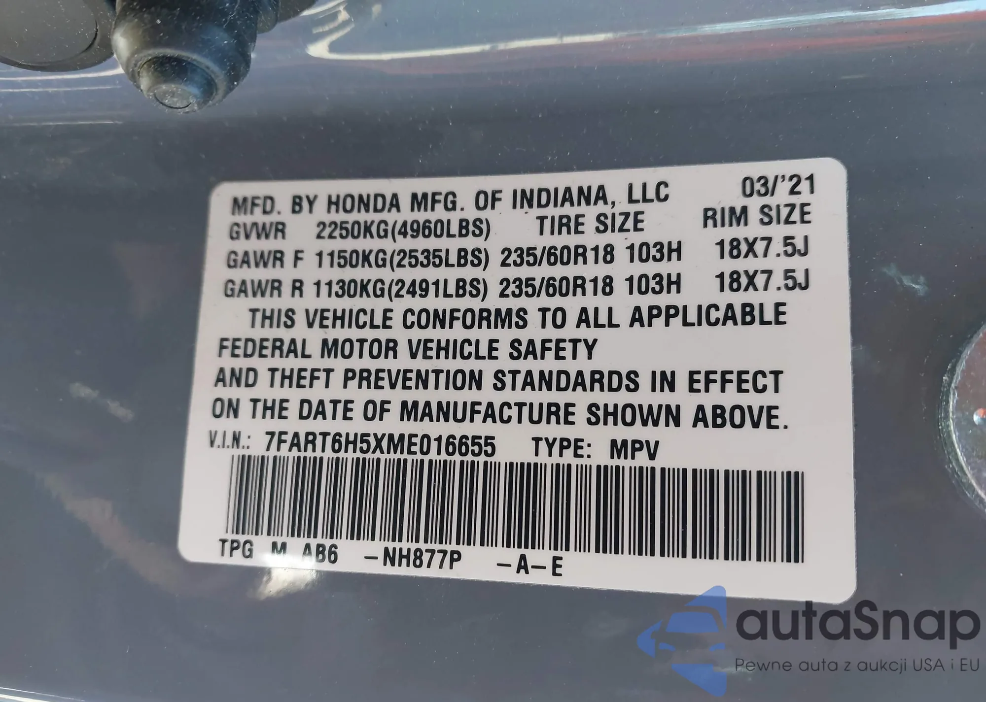 VIN: 7FART6H5XME016655