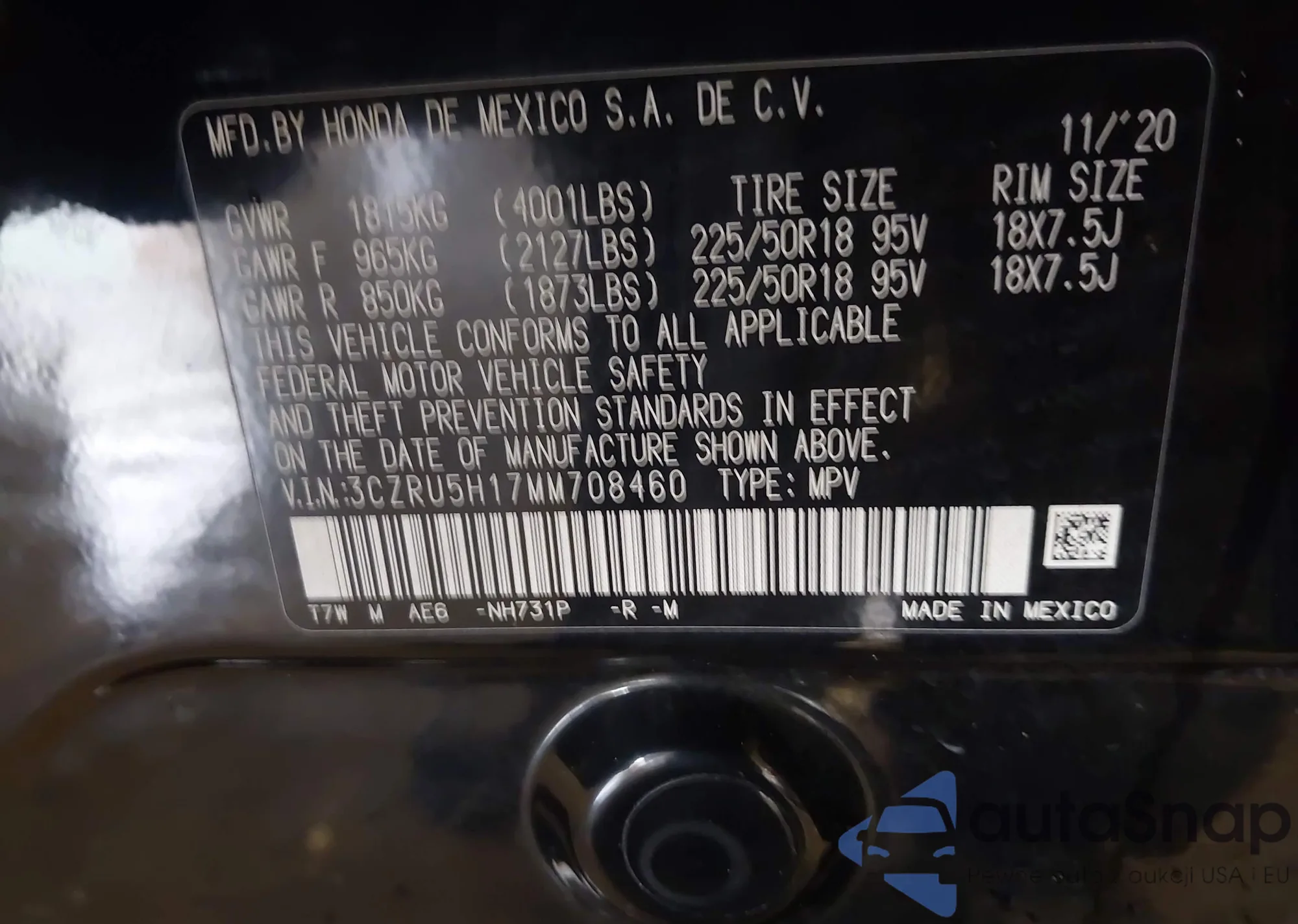 VIN: 3CZRU5H17MM708460