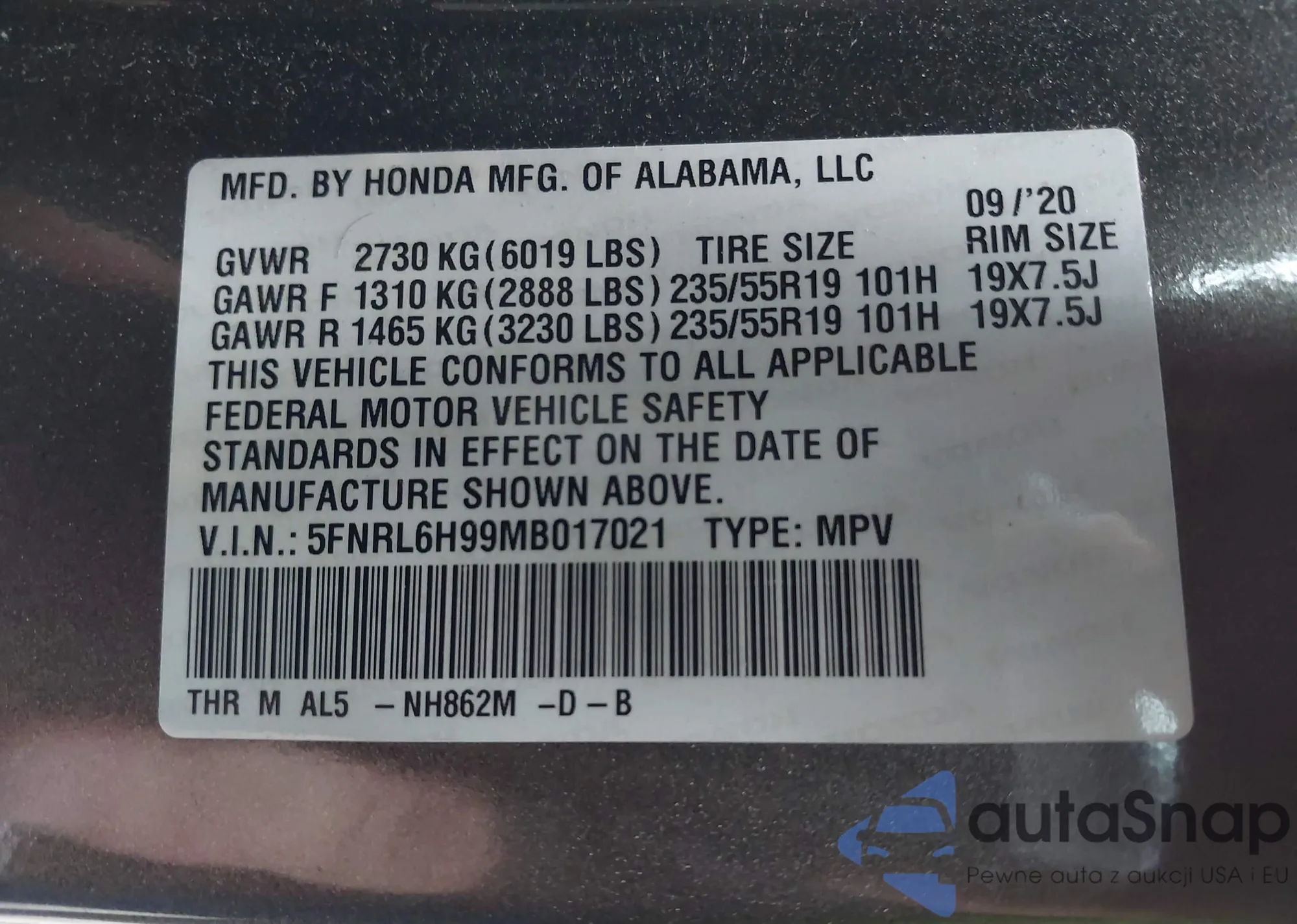 VIN: 5FNRL6H99MB017021