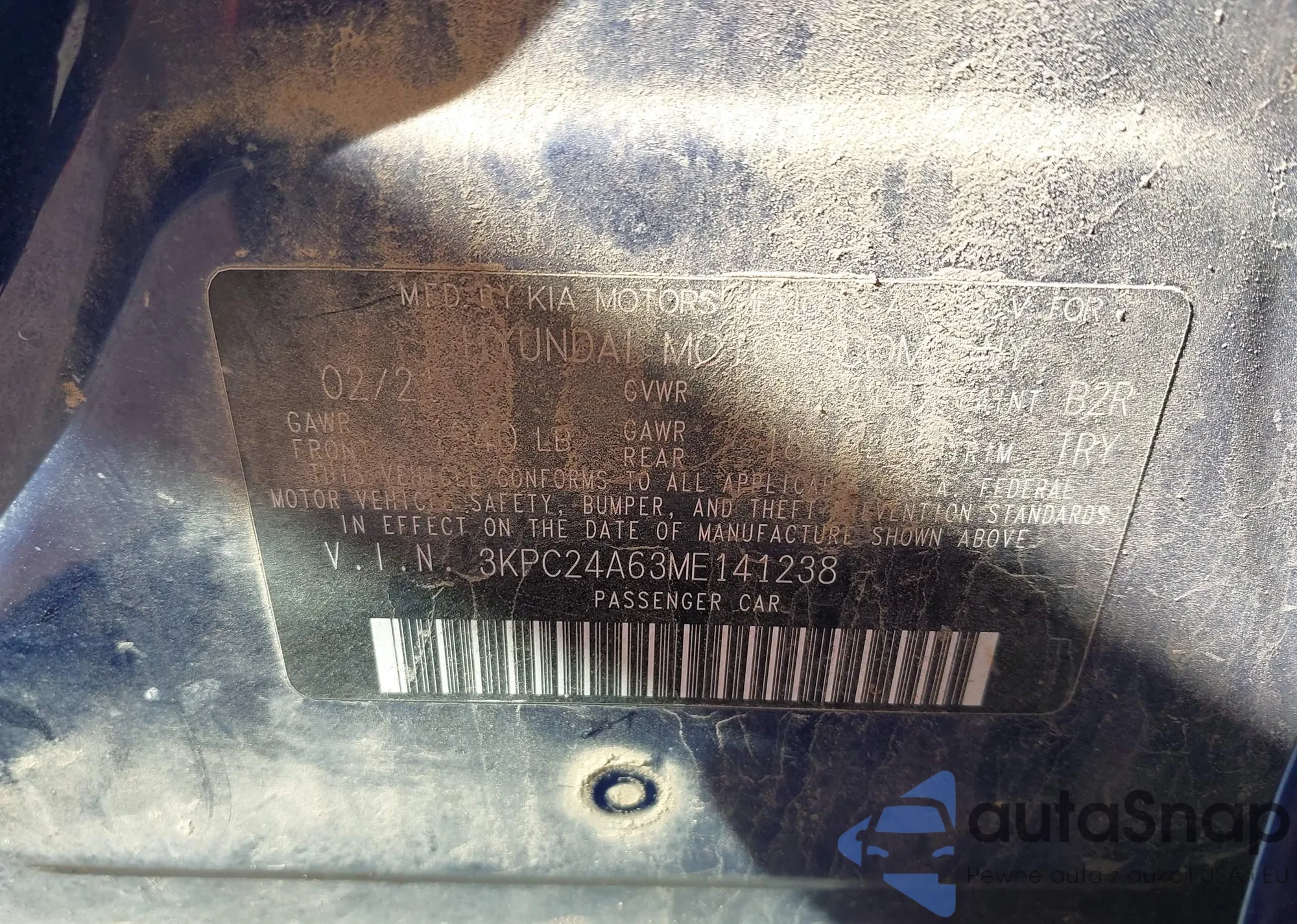 VIN: 3KPC24A63ME141238