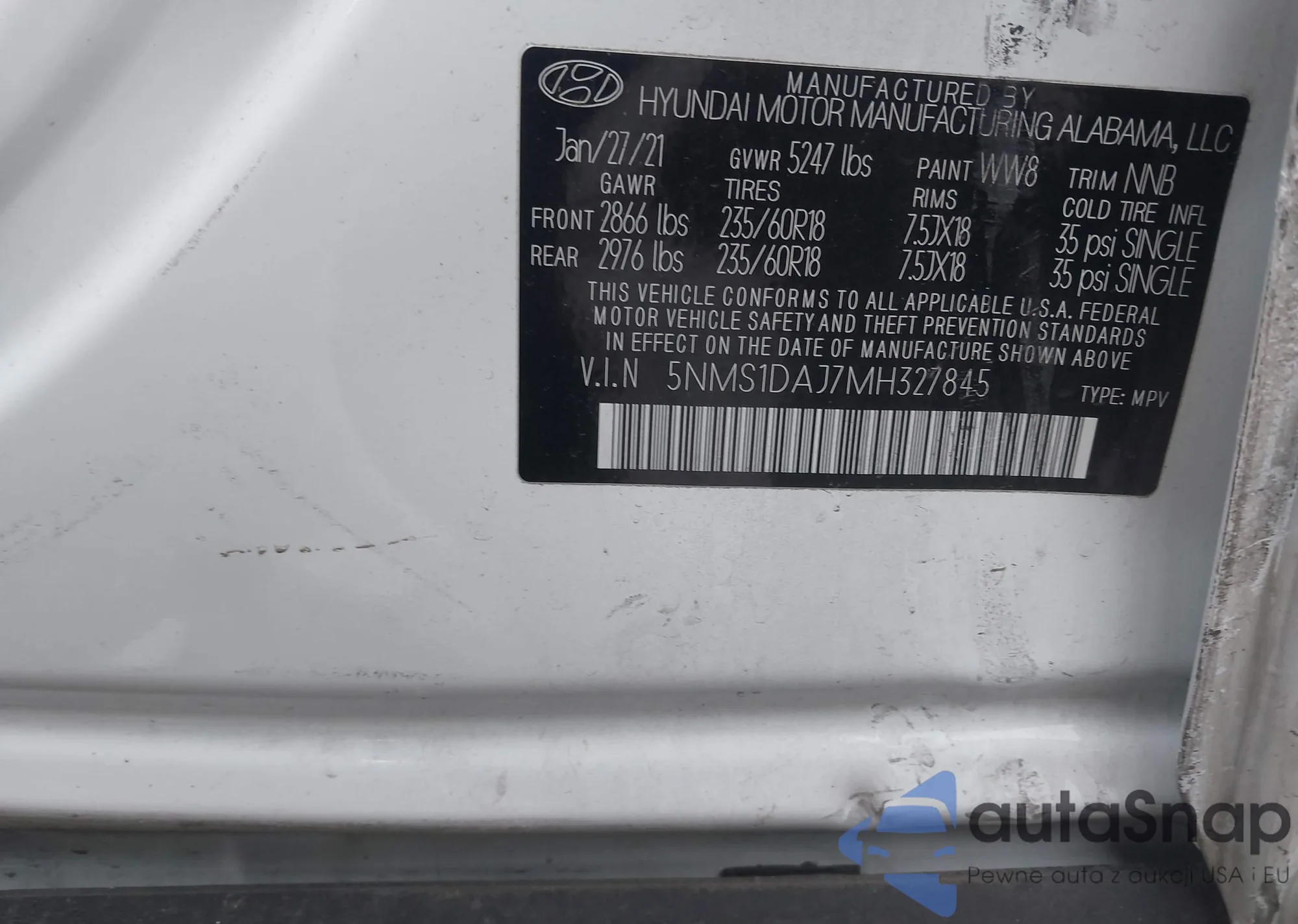 • VIN: 5NMS1DAJ7MH327845