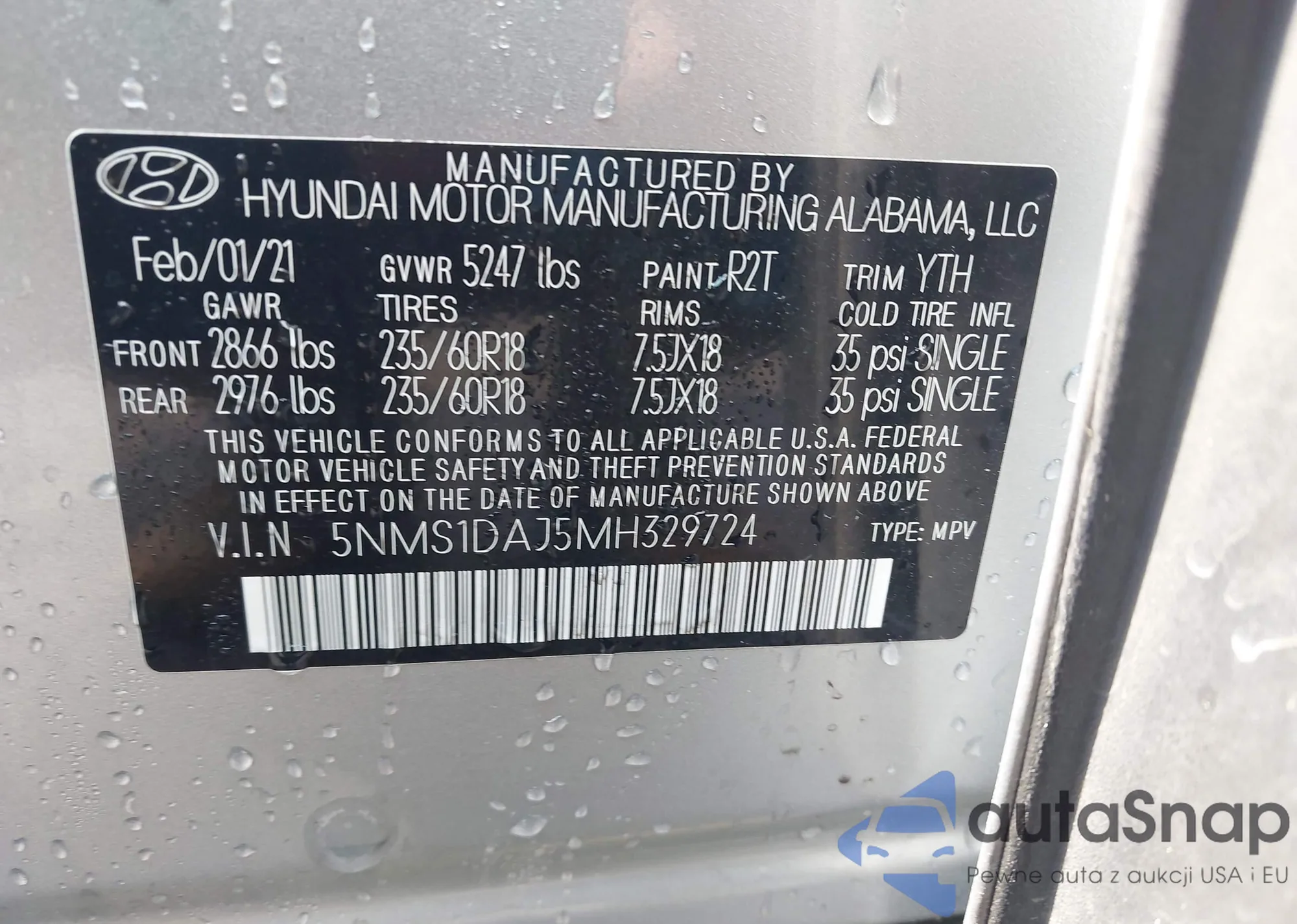 VIN: 5NMS1DAJ5MH329724