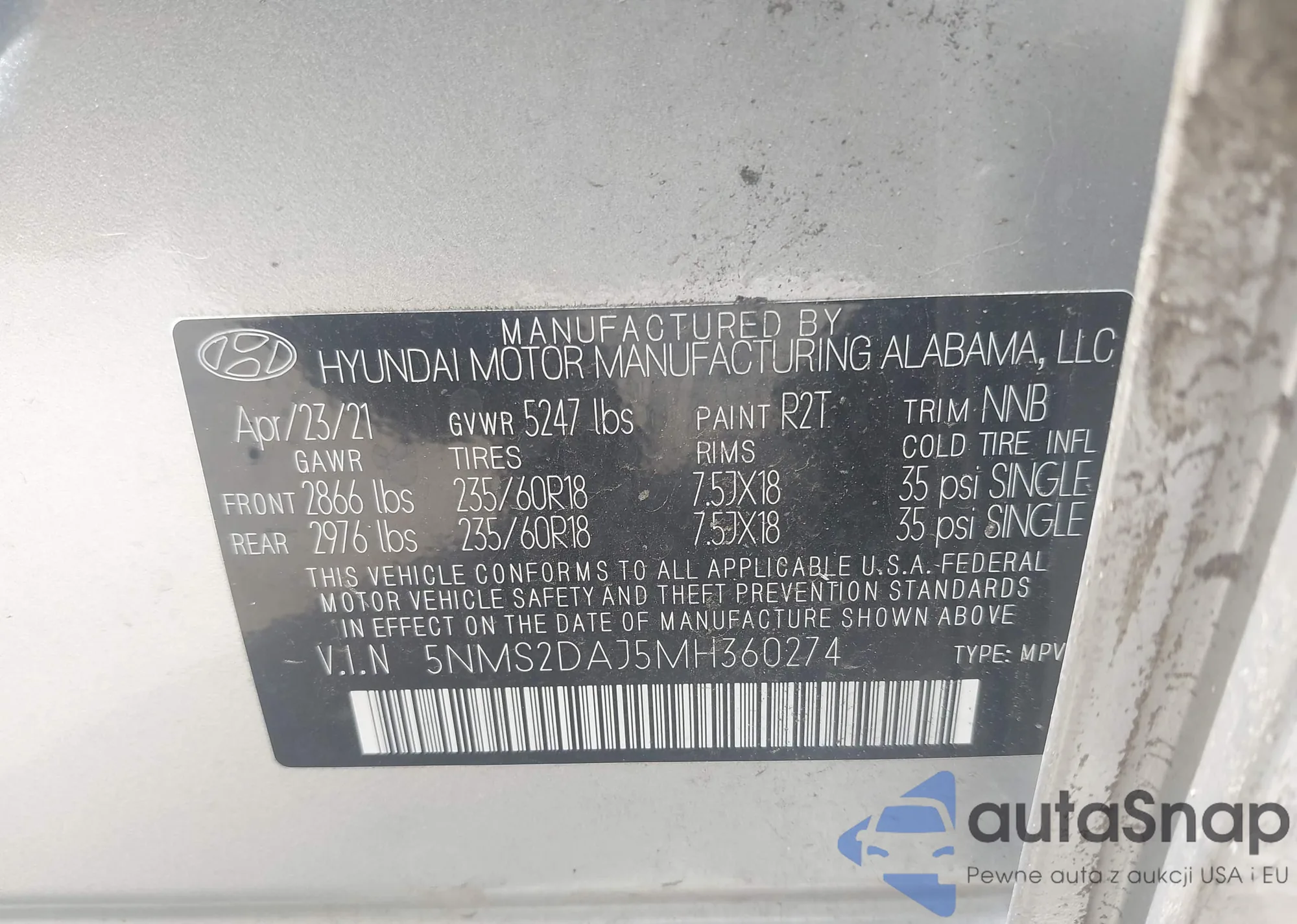 VIN: 5NMS2DAJ5MH360274