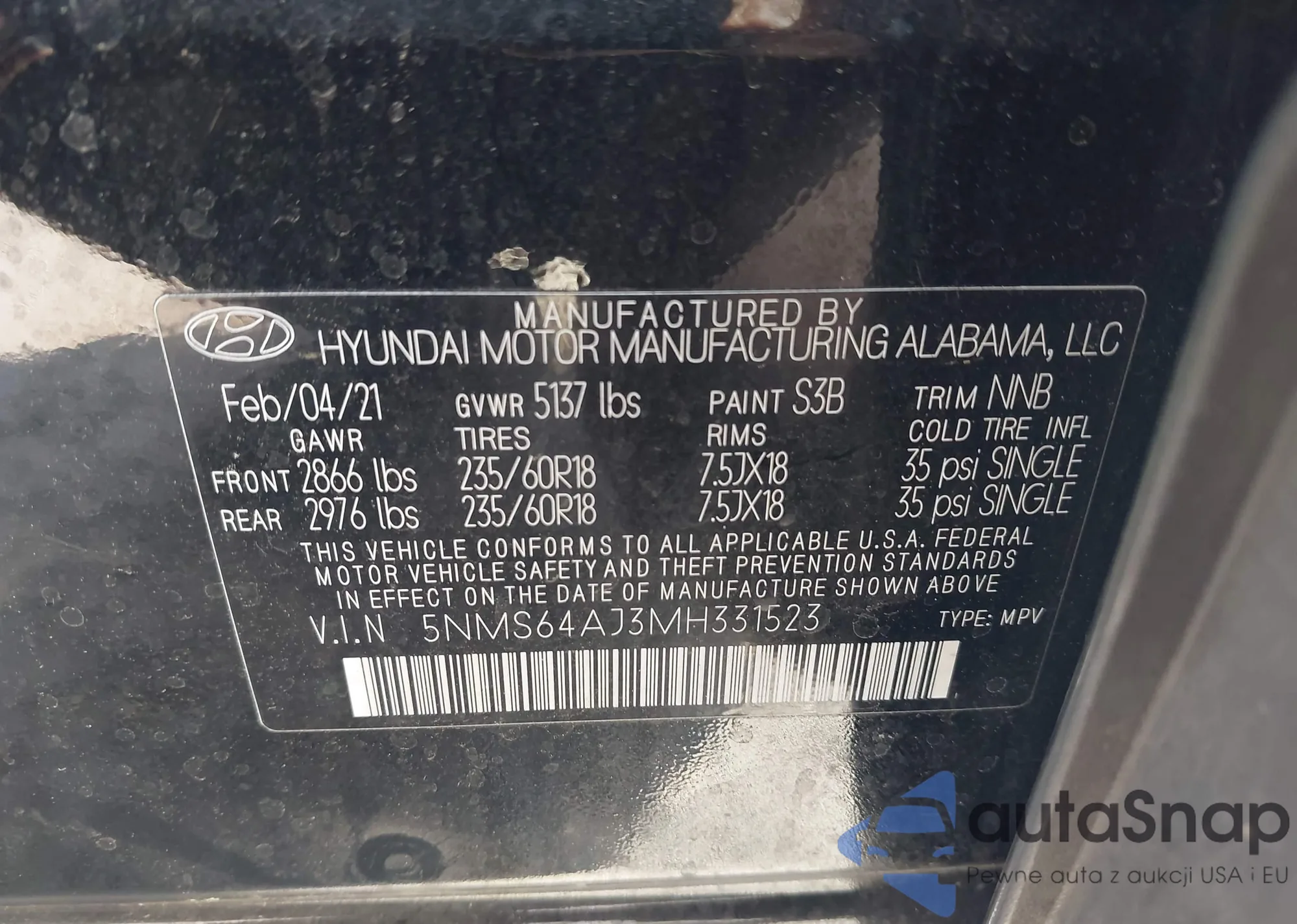VIN: 5NMS64AJ3MH331523