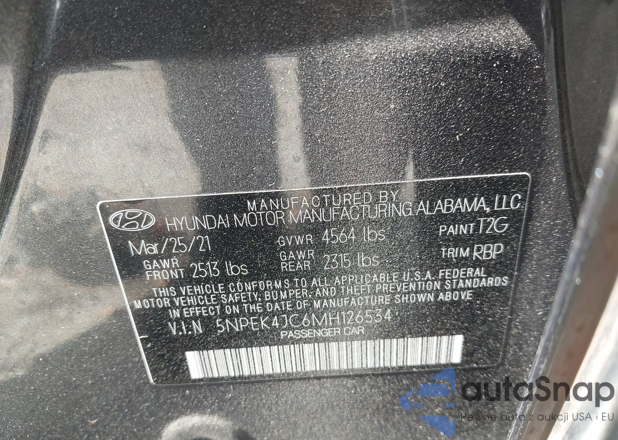 • VIN: 5NPEK4JC6MH126534