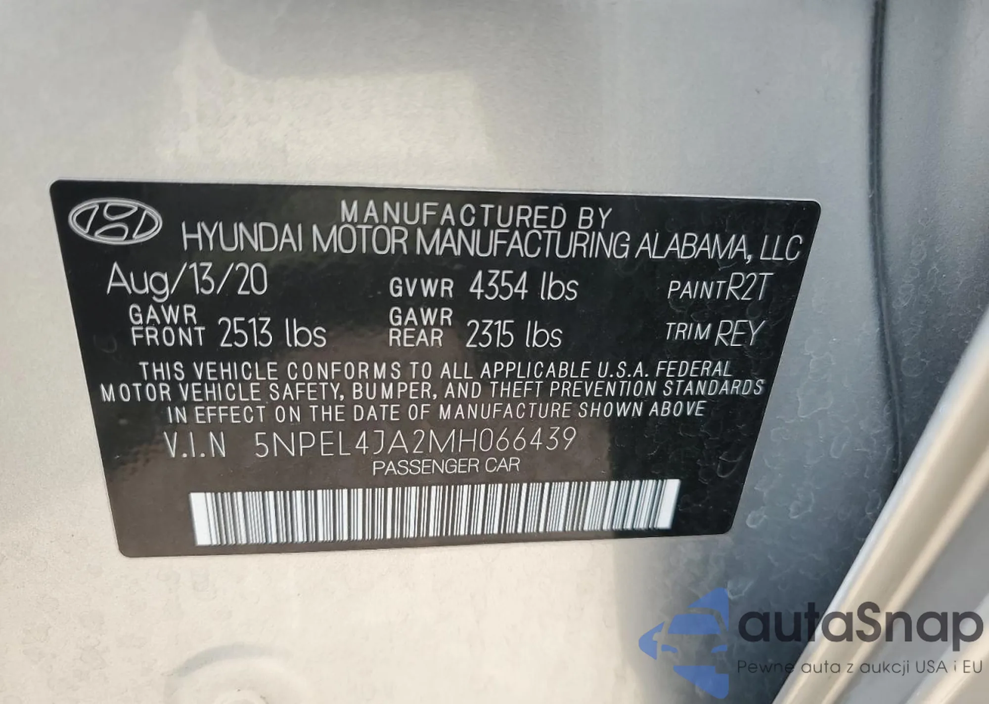 VIN: 5NPEL4JA2MH066439
