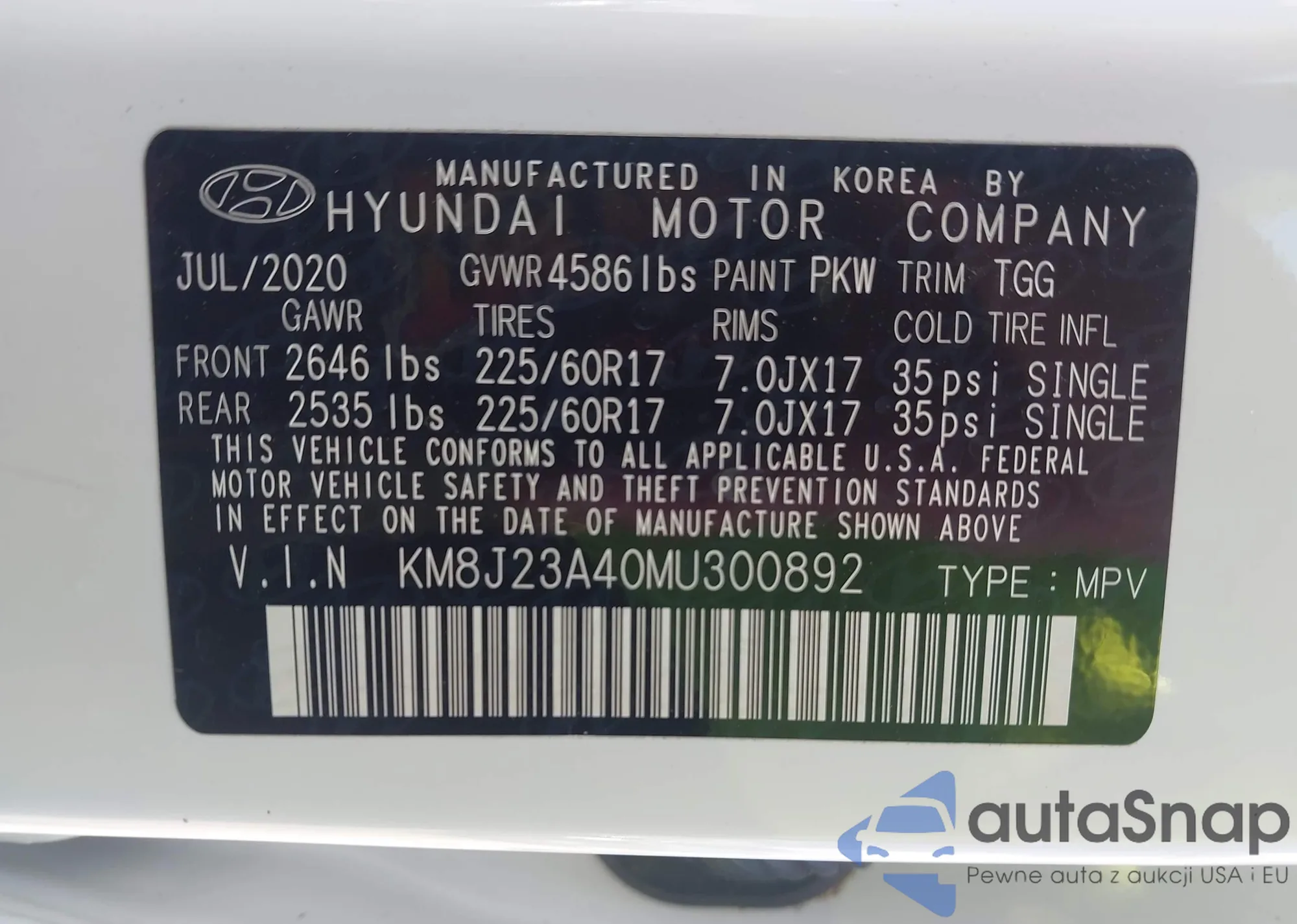 VIN: KM8J23A40MU300892