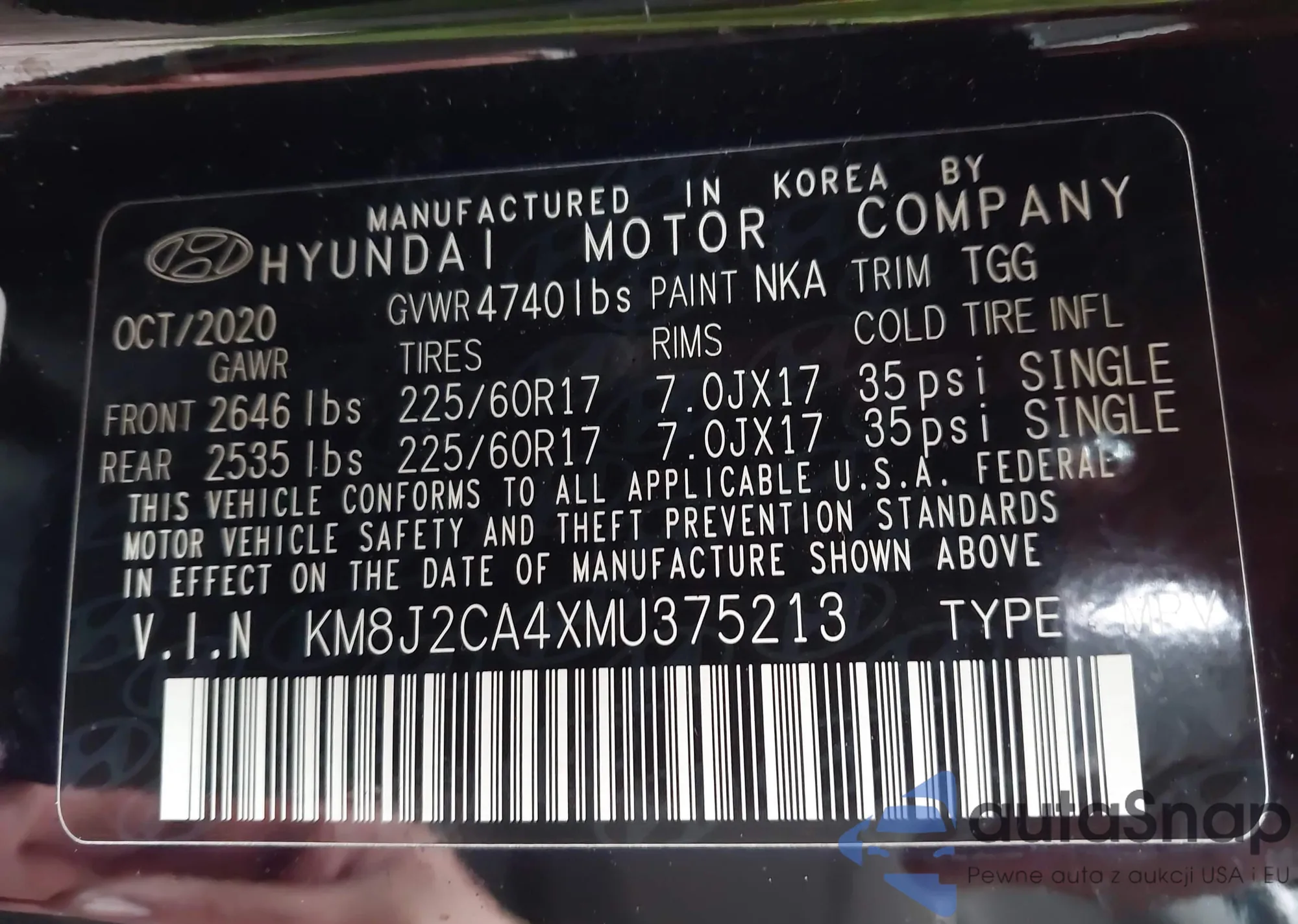 Автомобиль Hyundai Tucson 2021 (VIN KM8J2CA4XMU375213) ранее не участвовал в торгах. Документы чистые, пробег соответствует или ниже среднего по рынку. Продаётся страховой компанией — рекомендуем покупку. Доставка в порт займет около 6–8 недель.