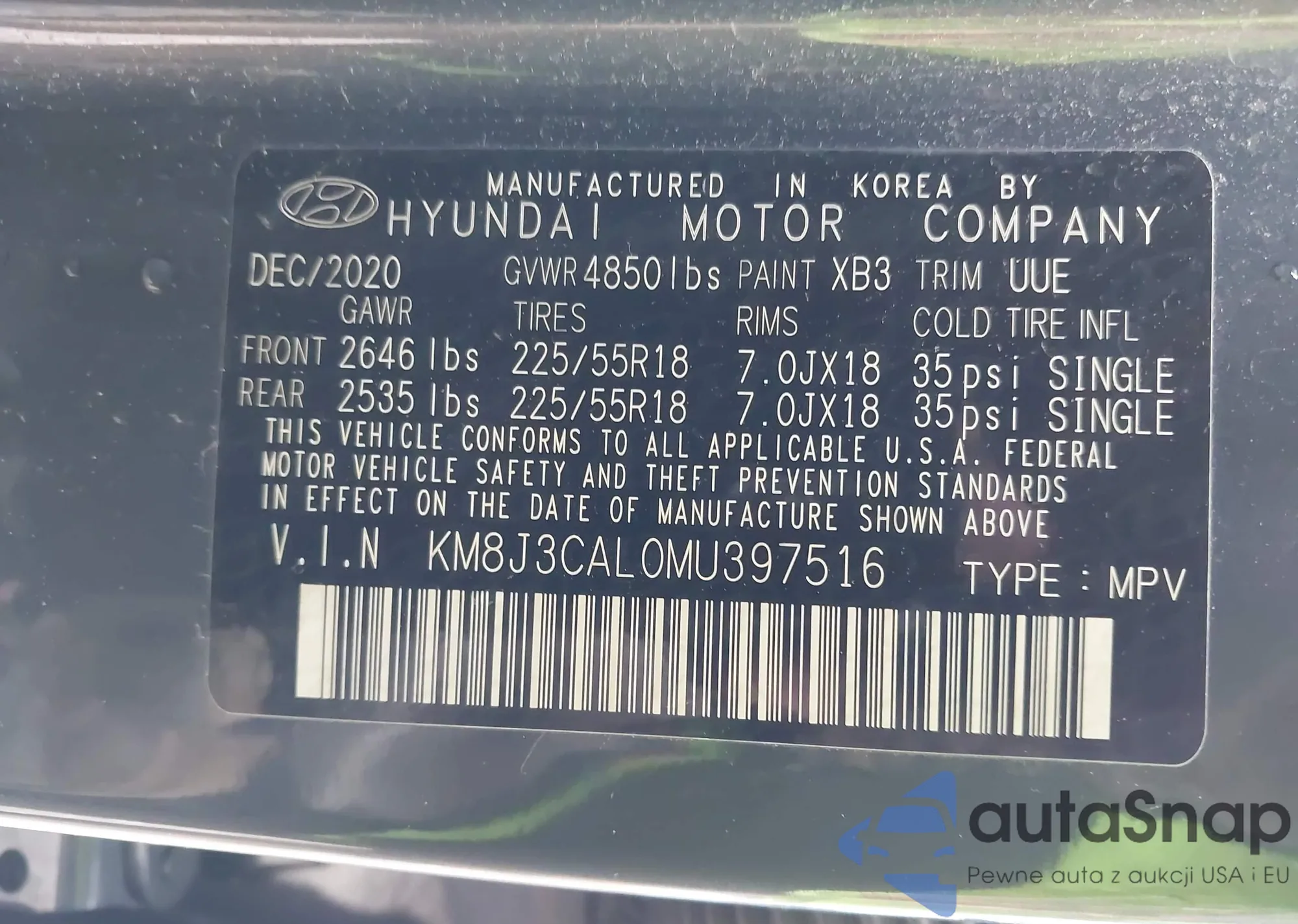 VIN: KM8J3CAL0MU397516