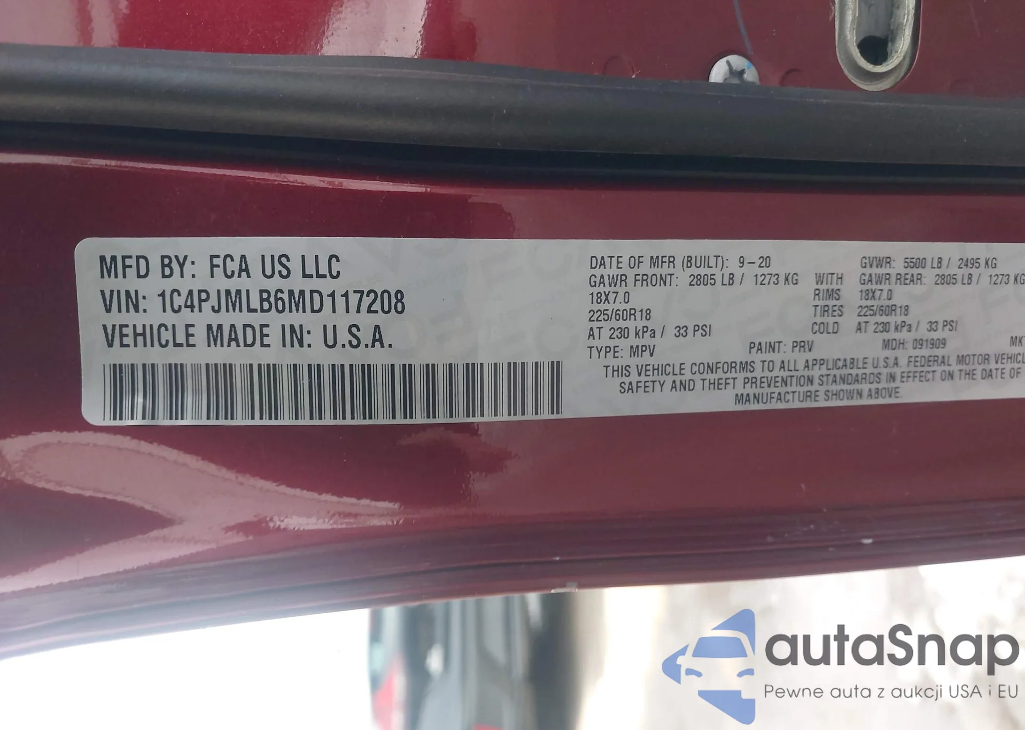 VIN: 1C4PJMLB6MD117208