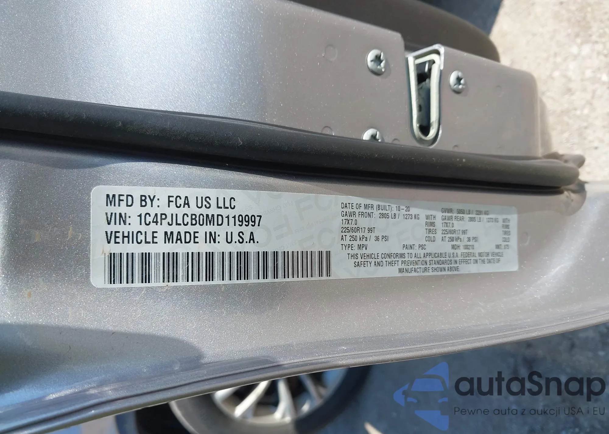 Автомобиль Jeep Cherokee 2021 (VIN 1C4PJLCB0MD119997) ранее не участвовал в торгах. Документы чистые, пробег соответствует или ниже среднего по рынку. Продаётся страховой компанией — рекомендуем покупку. Доставка в порт займет около 6–8 недель.