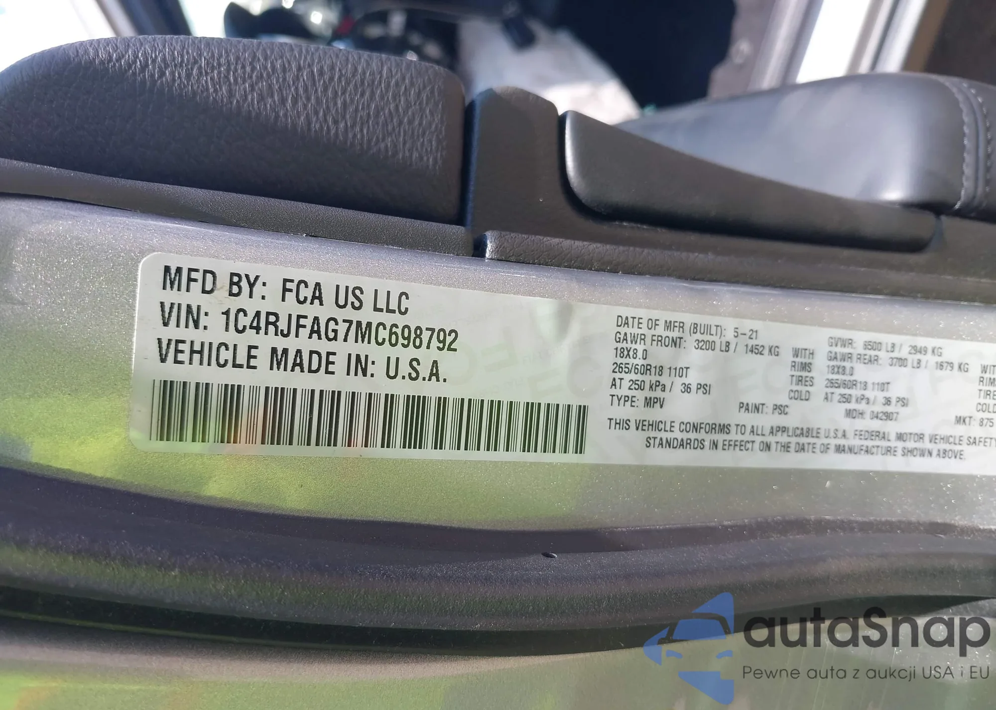 VIN: 1C4RJFAG7MC698792