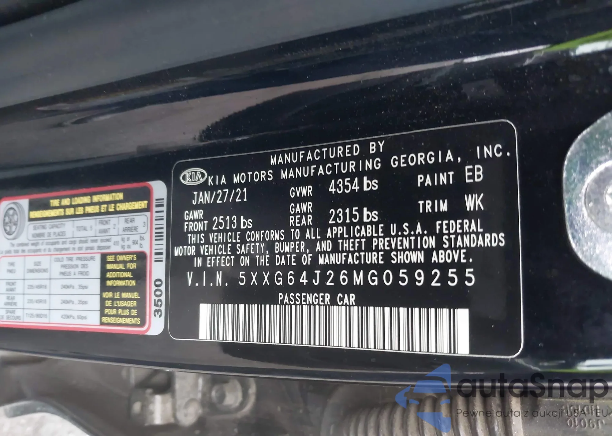 • VIN: 5XXG64J26MG059255