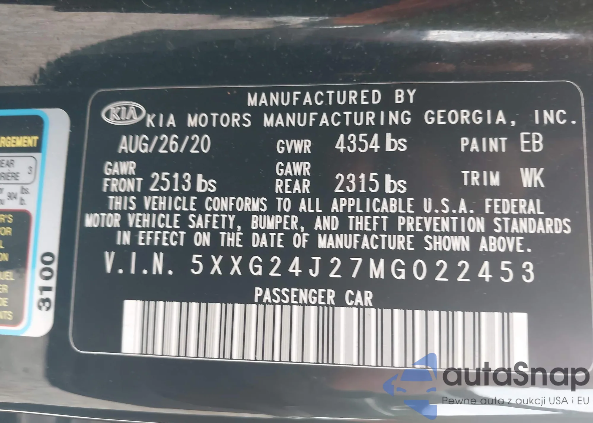 Автомобиль Kia K5 2021 (VIN 5XXG24J27MG022453) ранее не участвовал в торгах. Документы чистые, пробег соответствует или ниже среднего по рынку. Продаётся страховой компанией — рекомендуем покупку. Доставка в порт займет около 6–8 недель.