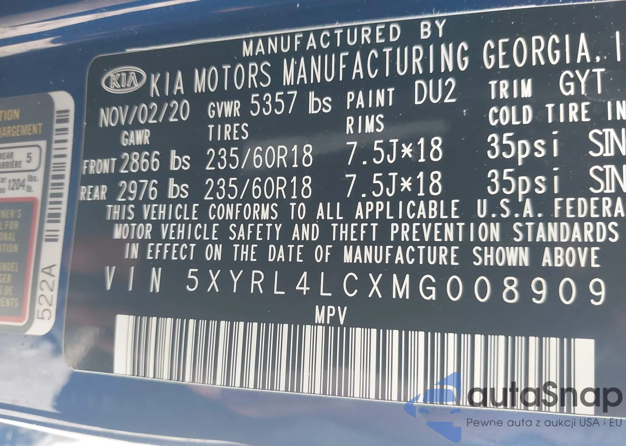 VIN: 5XYRL4LCXMG008909