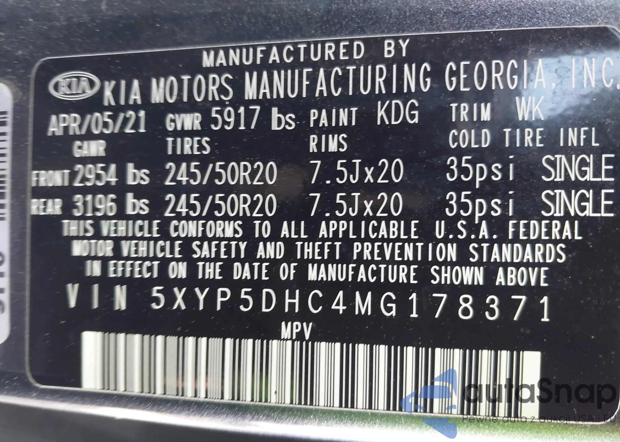 VIN: 5XYP5DHC4MG178371