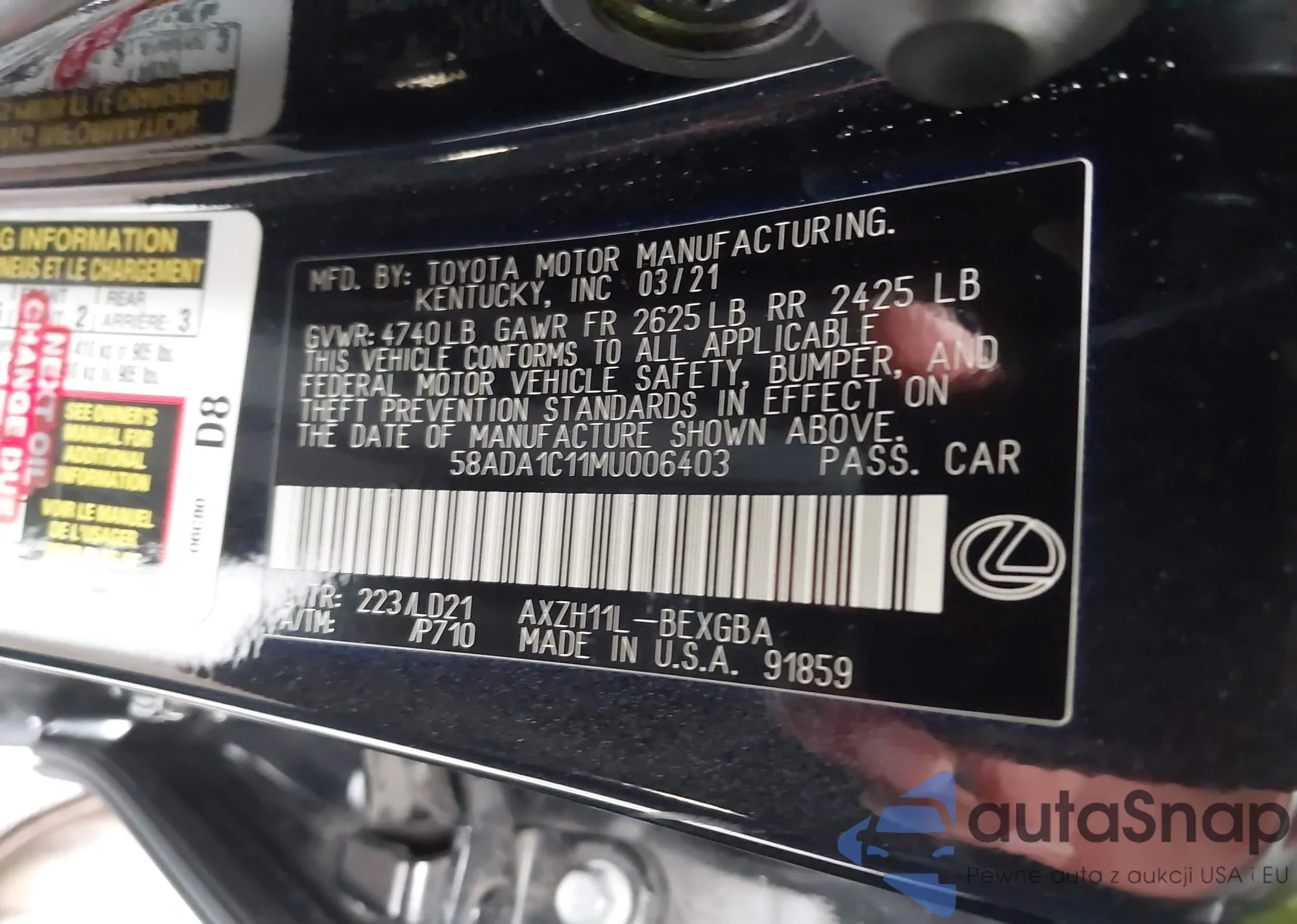 • VIN: 58ADA1C11MU006403