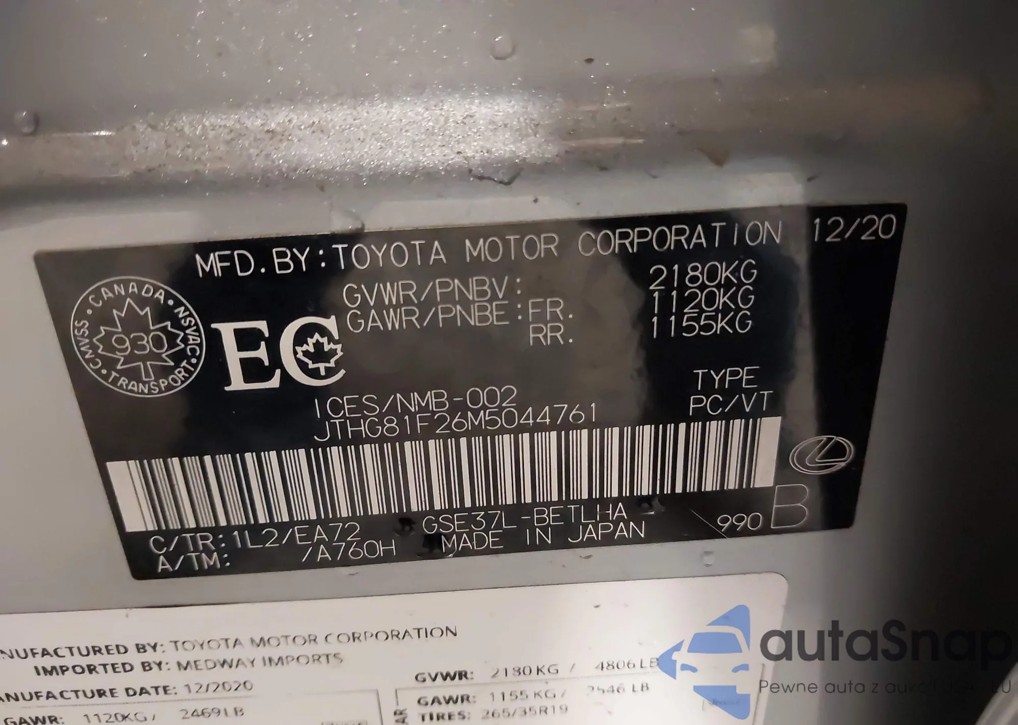 VIN: JTHG81F26M5044761