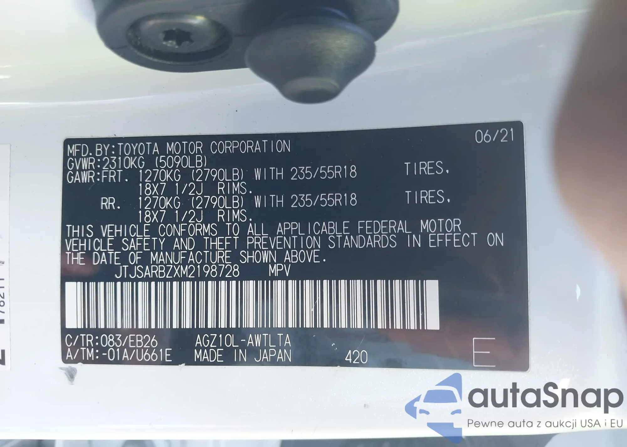 • VIN: JTJSARBZXM2198728