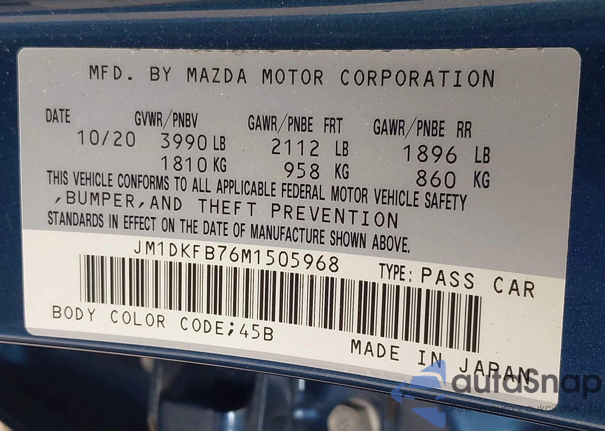 VIN: JM1DKFB76M1505968
