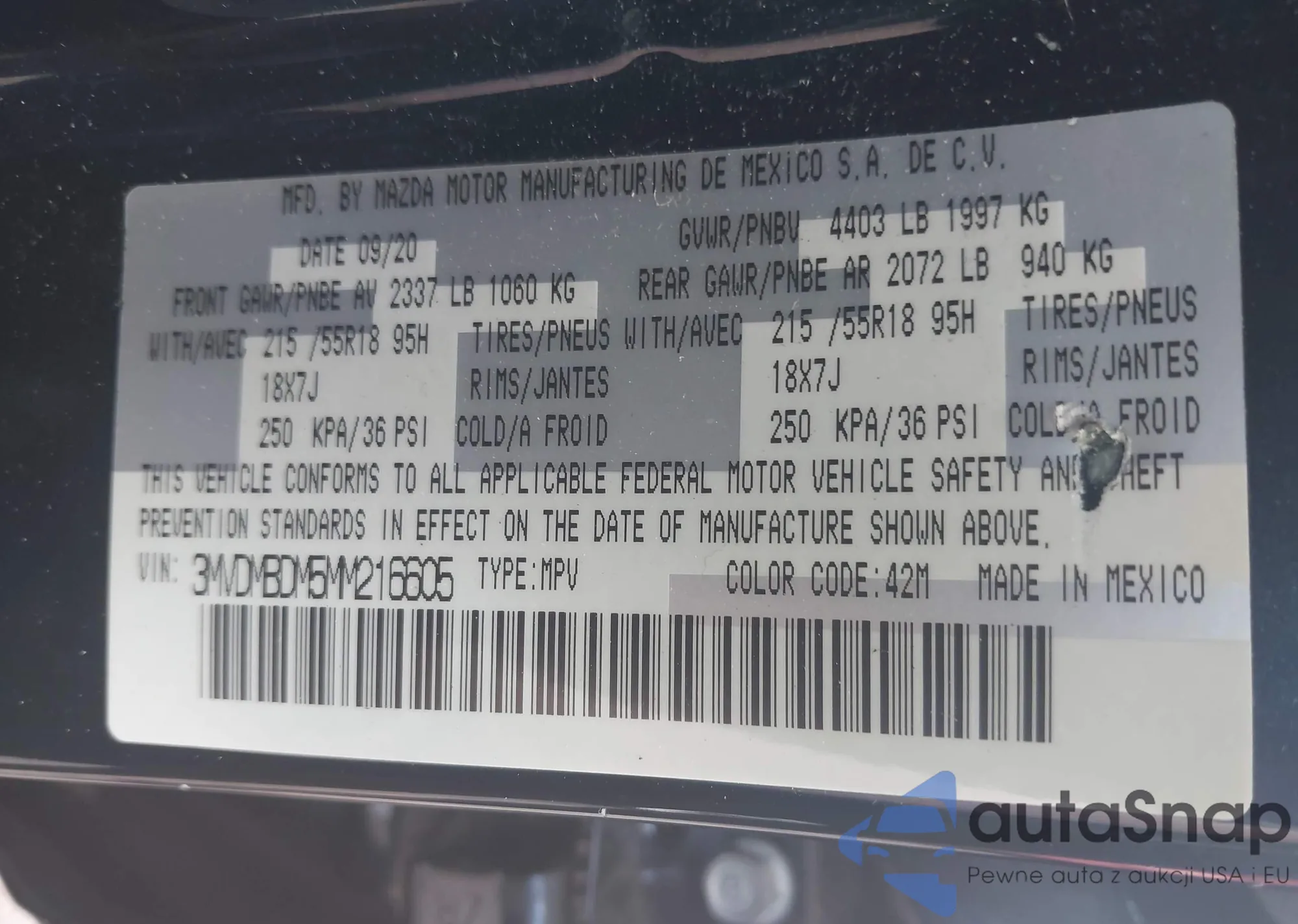 VIN: 3MVDMBDM5MM216605