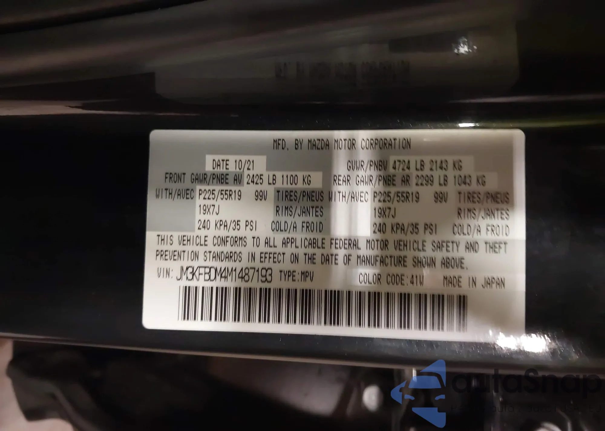 Автомобиль Mazda CX-5 2021 (VIN JM3KFBDM4M1487193) ранее не участвовал в торгах. Документы чистые, пробег соответствует или ниже среднего по рынку. Продаётся страховой компанией — рекомендуем покупку. Доставка в порт займет около 6–8 недель.