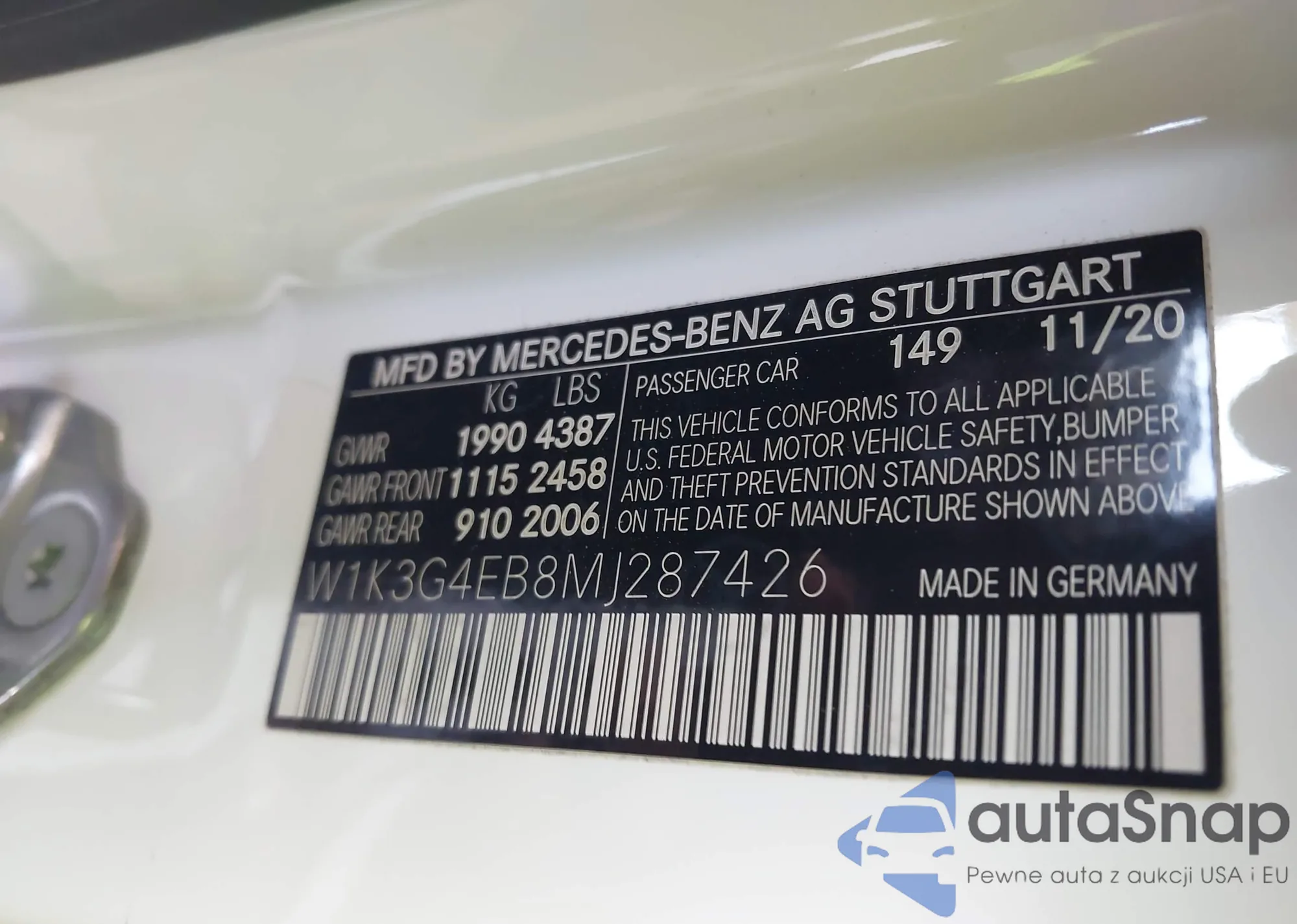 VIN: W1K3G4EB8MJ287426