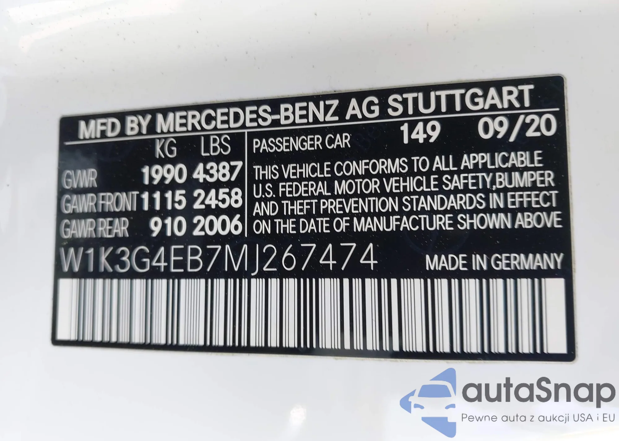 VIN: W1K3G4EB7MJ267474