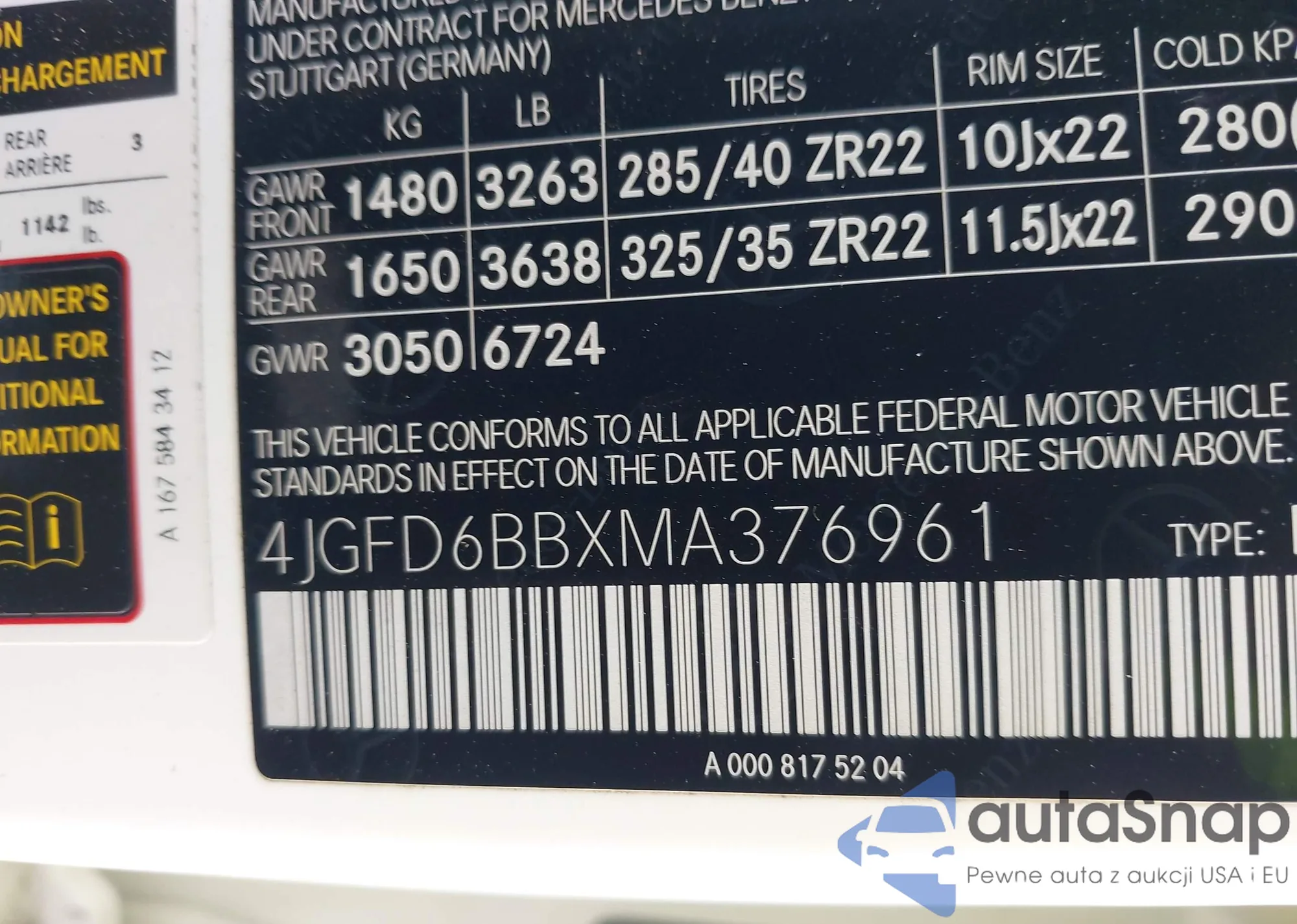 VIN: 4JGFD6BBXMA376961