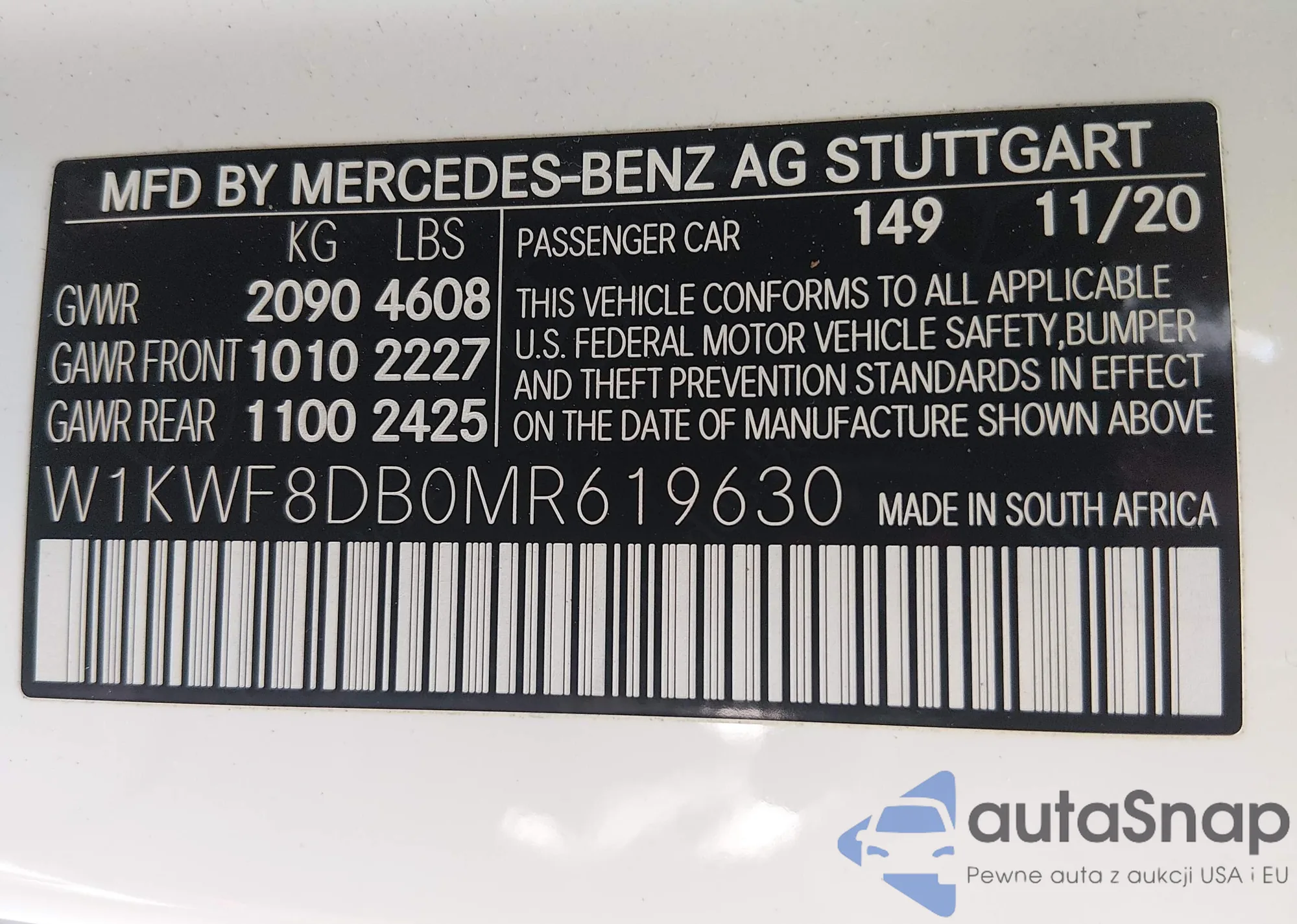 Автомобиль Mercedes-Benz C-klasse 2021 (VIN W1KWF8DB0MR619630) ранее не участвовал в торгах. Документы чистые, пробег соответствует или ниже среднего по рынку. Продаётся страховой компанией — рекомендуем покупку. Доставка в порт займет около 6–8 недель.
