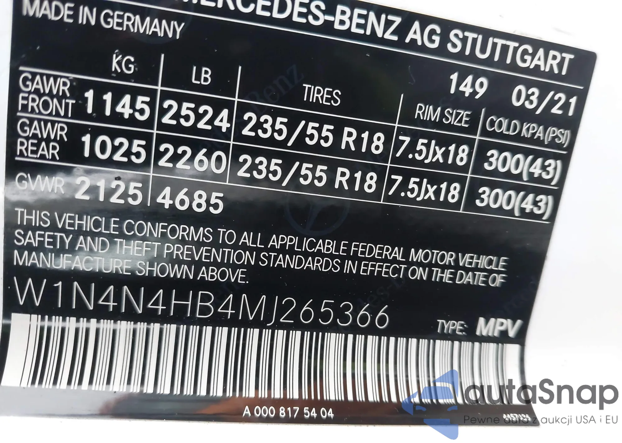VIN: W1N4N4HB4MJ265366