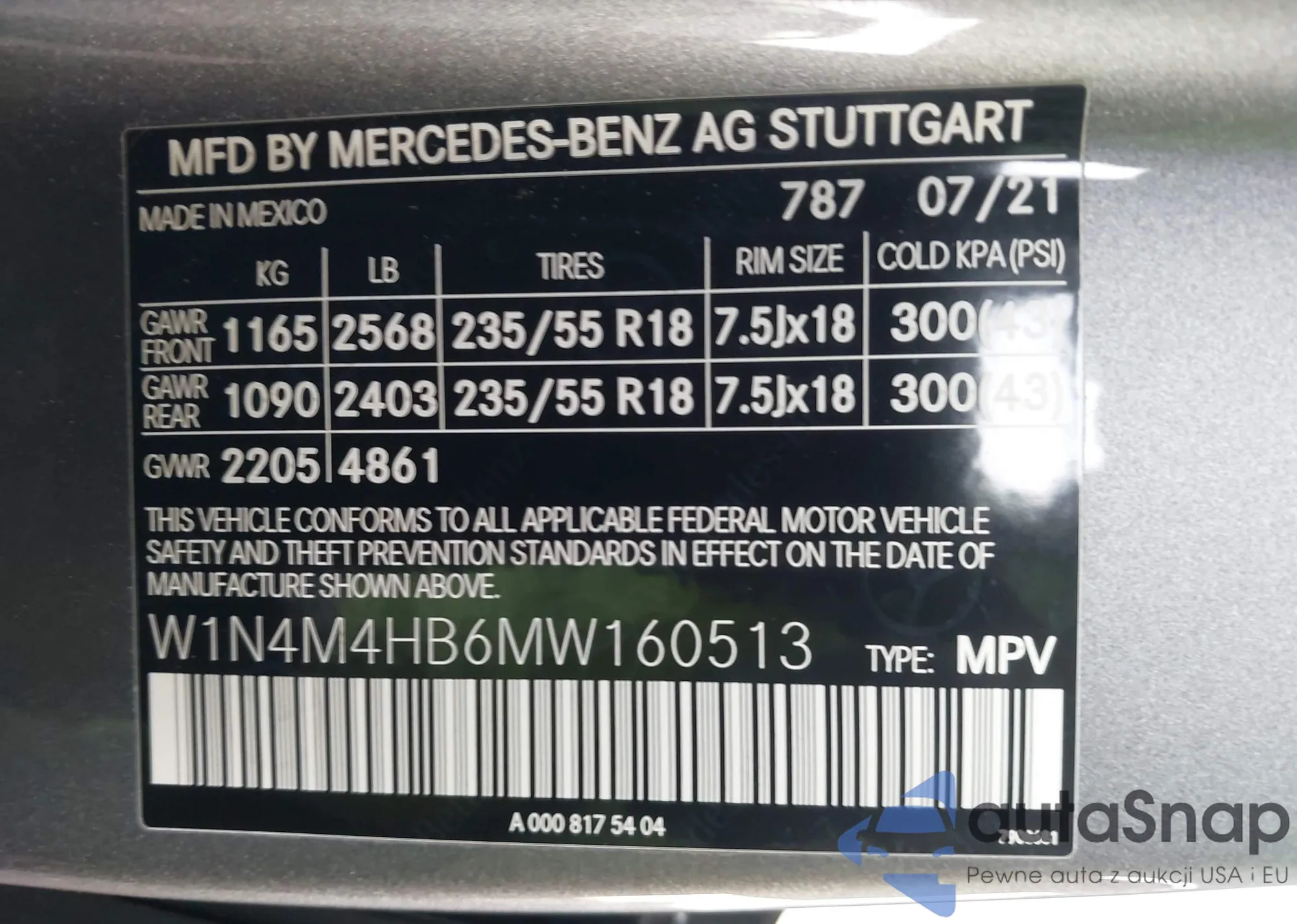 • VIN: W1N4M4HB6MW160513