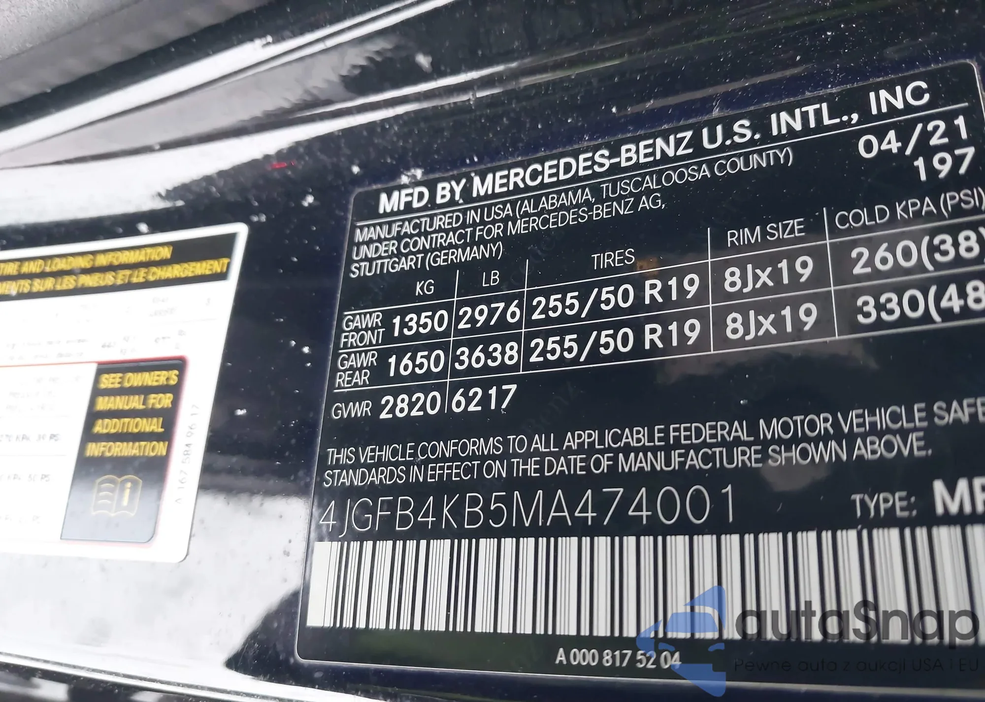 • VIN: 4JGFB4KB5MA474001