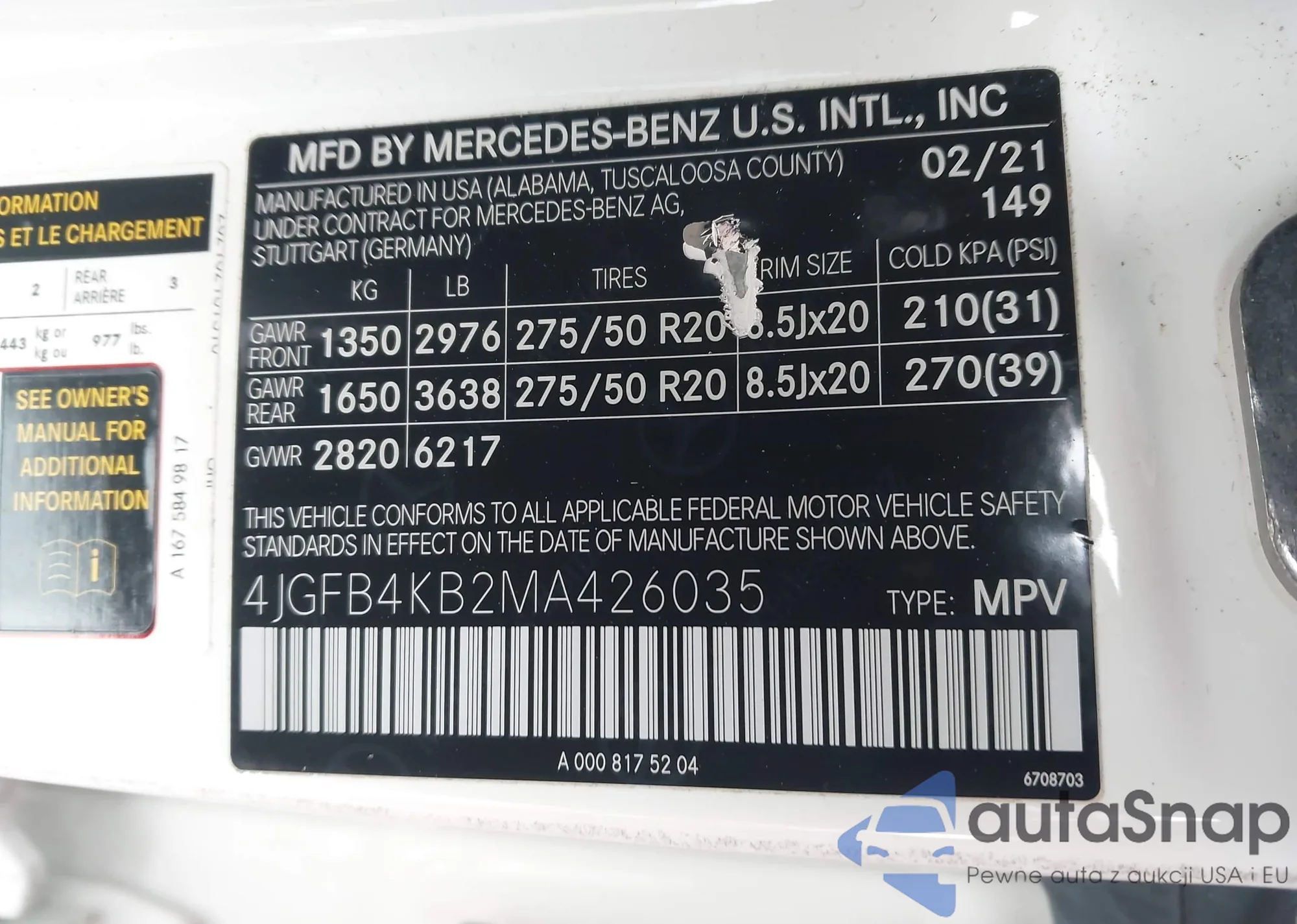 VIN: 4JGFB4KB2MA426035