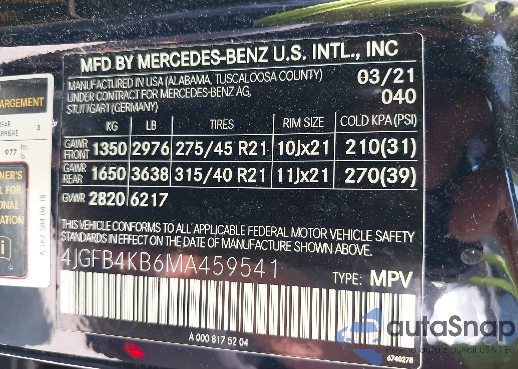 VIN: 4JGFB4KB6MA459541