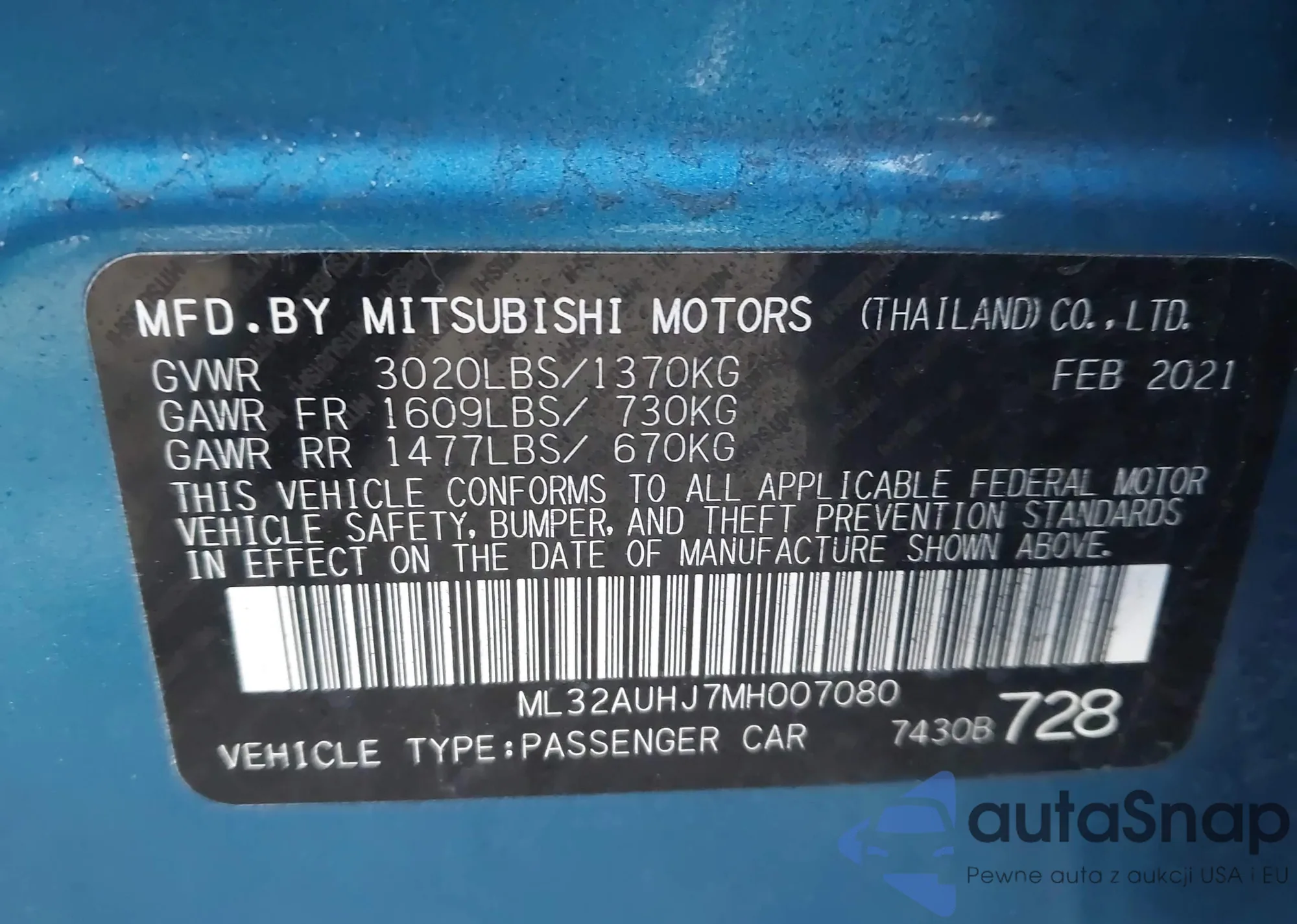 Автомобиль Mitsubishi Mirage 2021 (VIN ML32AUHJ7MH007080) ранее не участвовал в торгах. Документы чистые, пробег соответствует или ниже среднего по рынку. Продаётся страховой компанией — рекомендуем покупку. Доставка в порт займет около 6–8 недель.