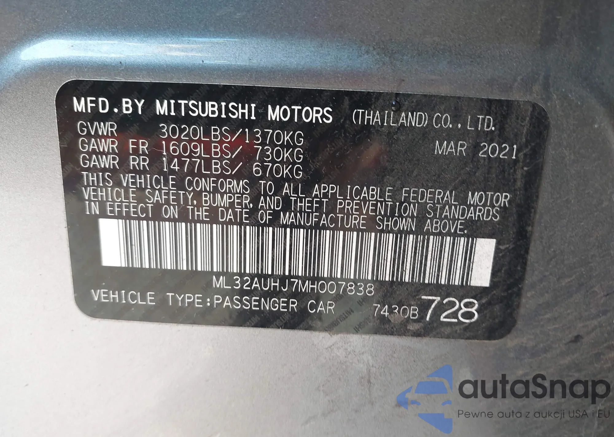 • VIN: ML32AUHJ7MH007838