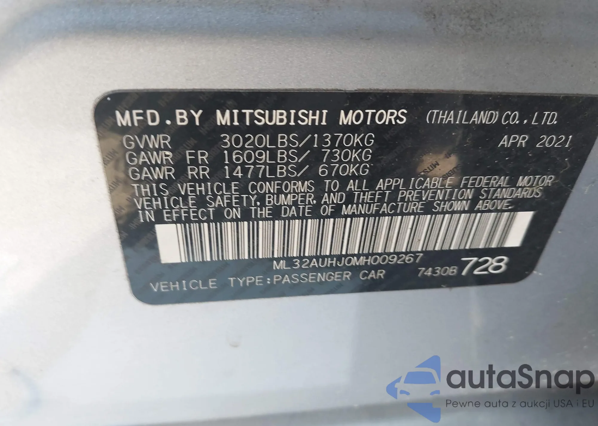 • Марка: 2021 Mitsubishi Mirag...