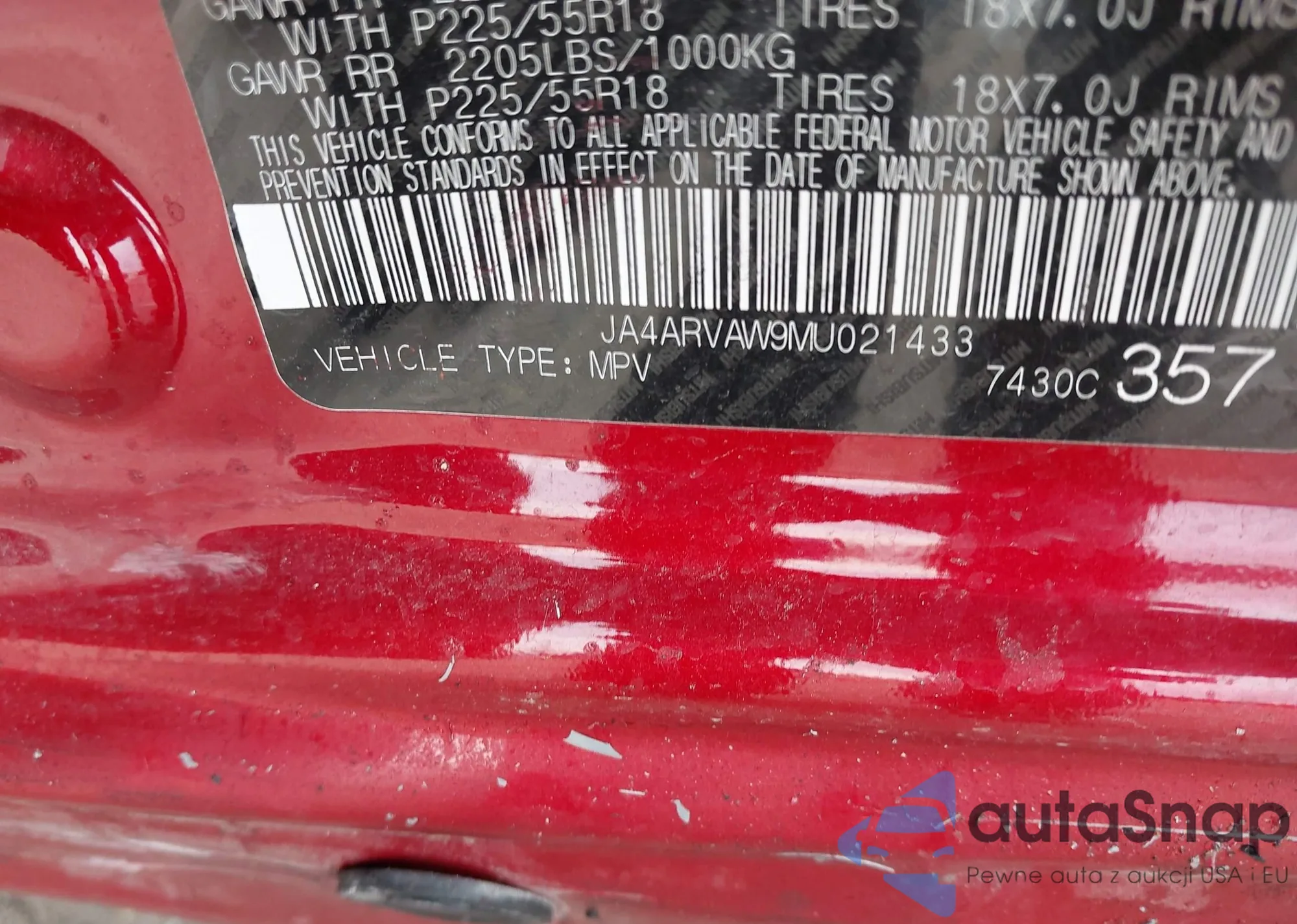 • VIN: JA4ARVAW9MU021433