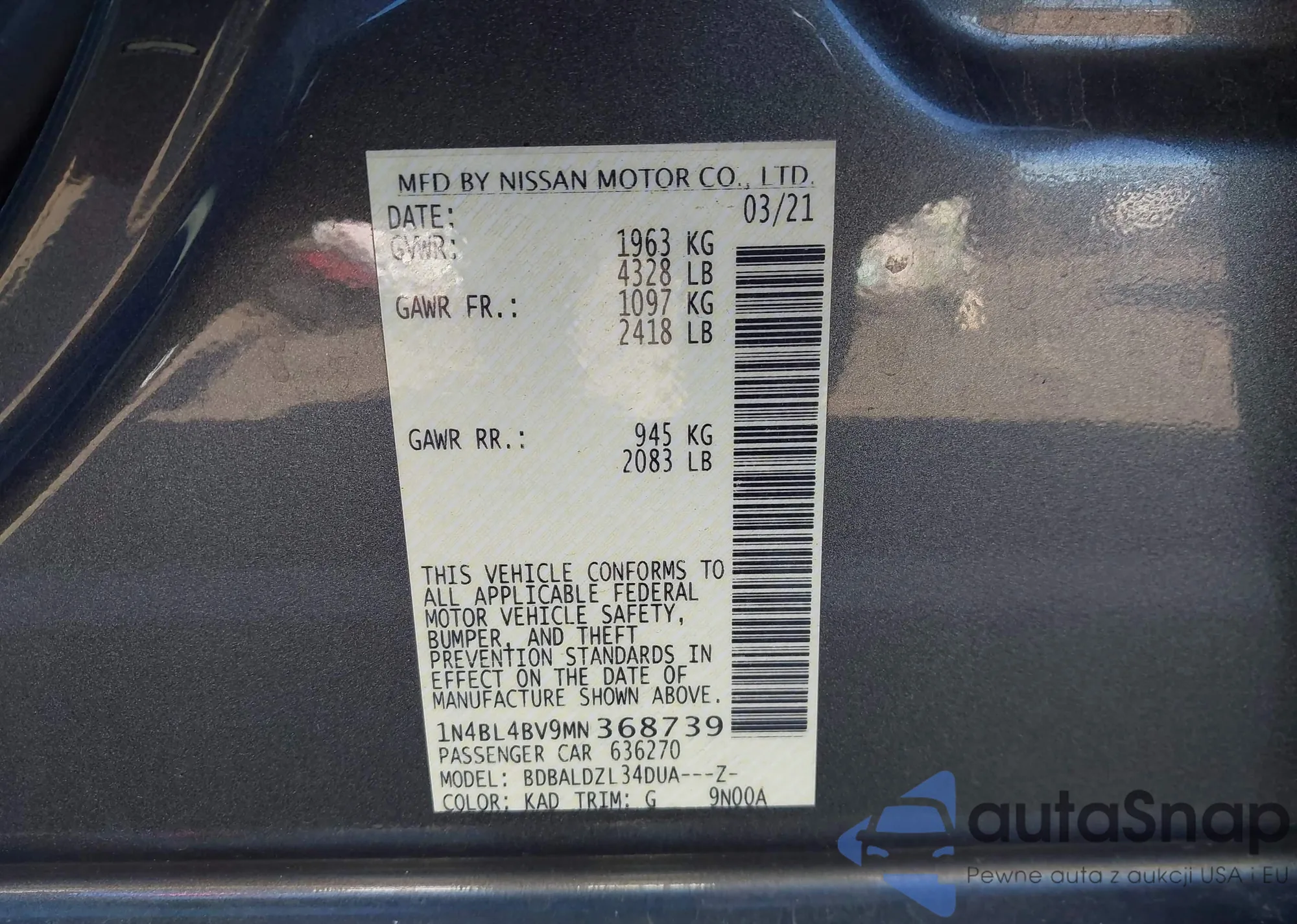 VIN: 1N4BL4BV9MN368739