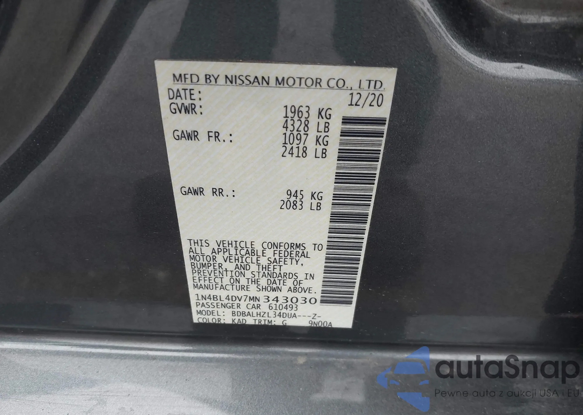 VIN: 1N4BL4DV7MN343030