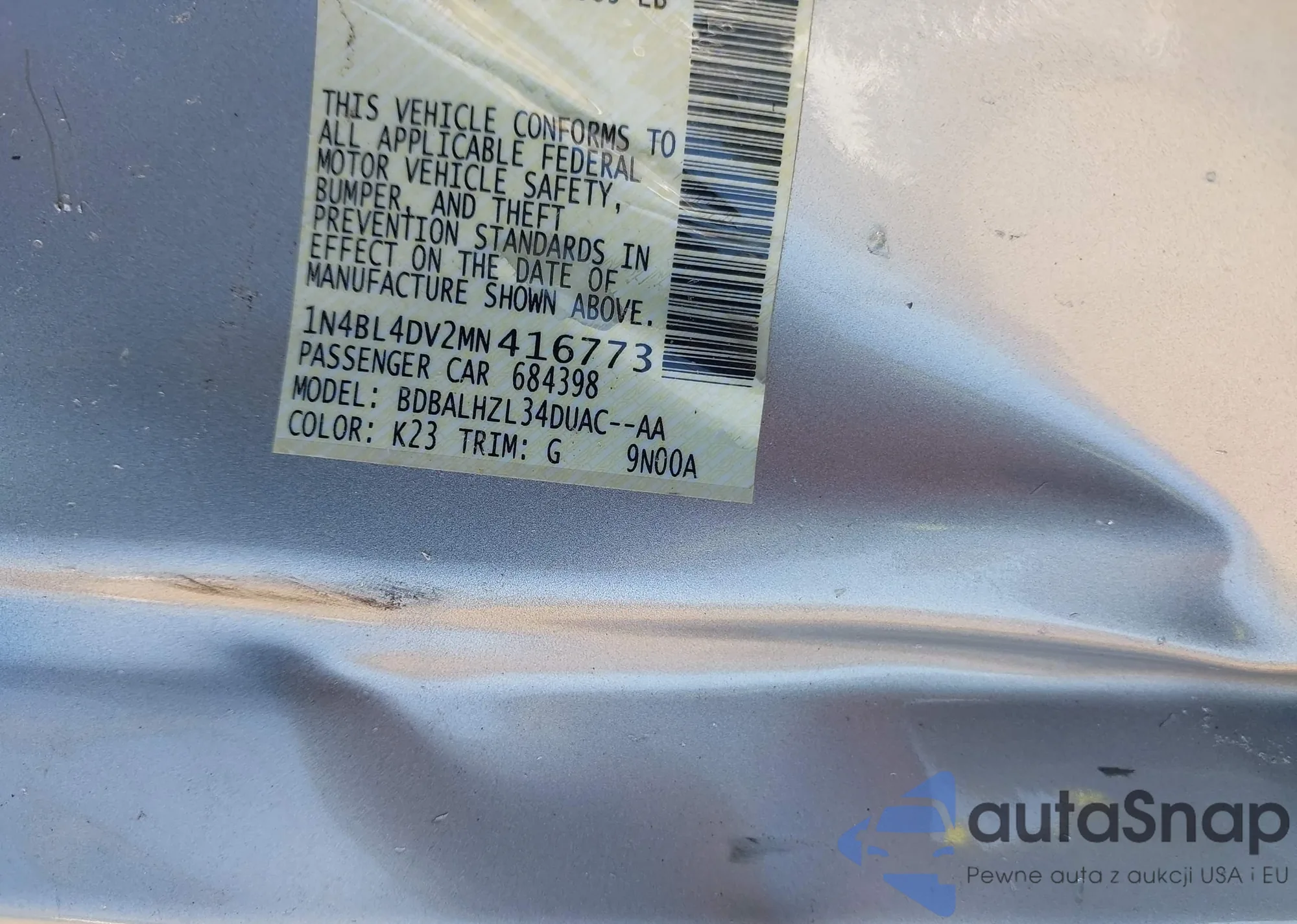 VIN: 1N4BL4DV2MN416773