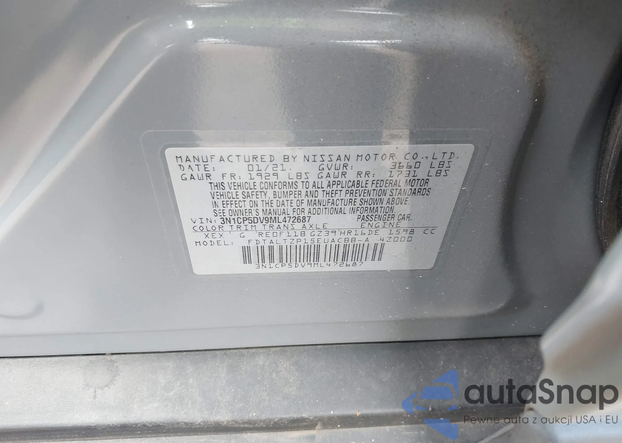 VIN: 3N1CP5DV9ML472687