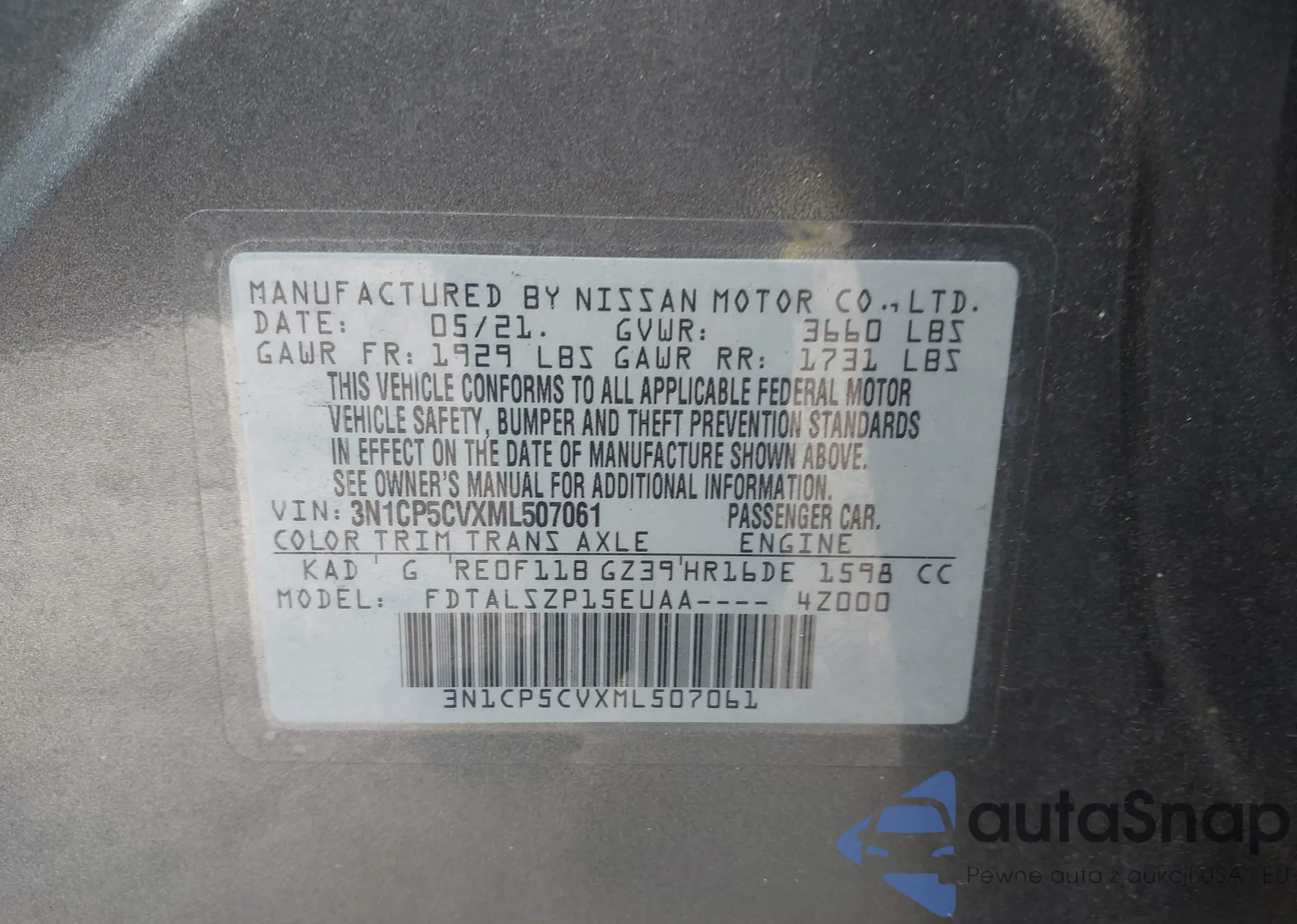 VIN: 3N1CP5CVXML507061