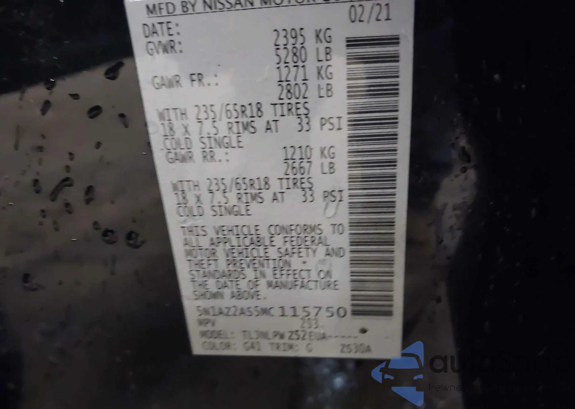 VIN: 5N1AZ2AS5MC115750