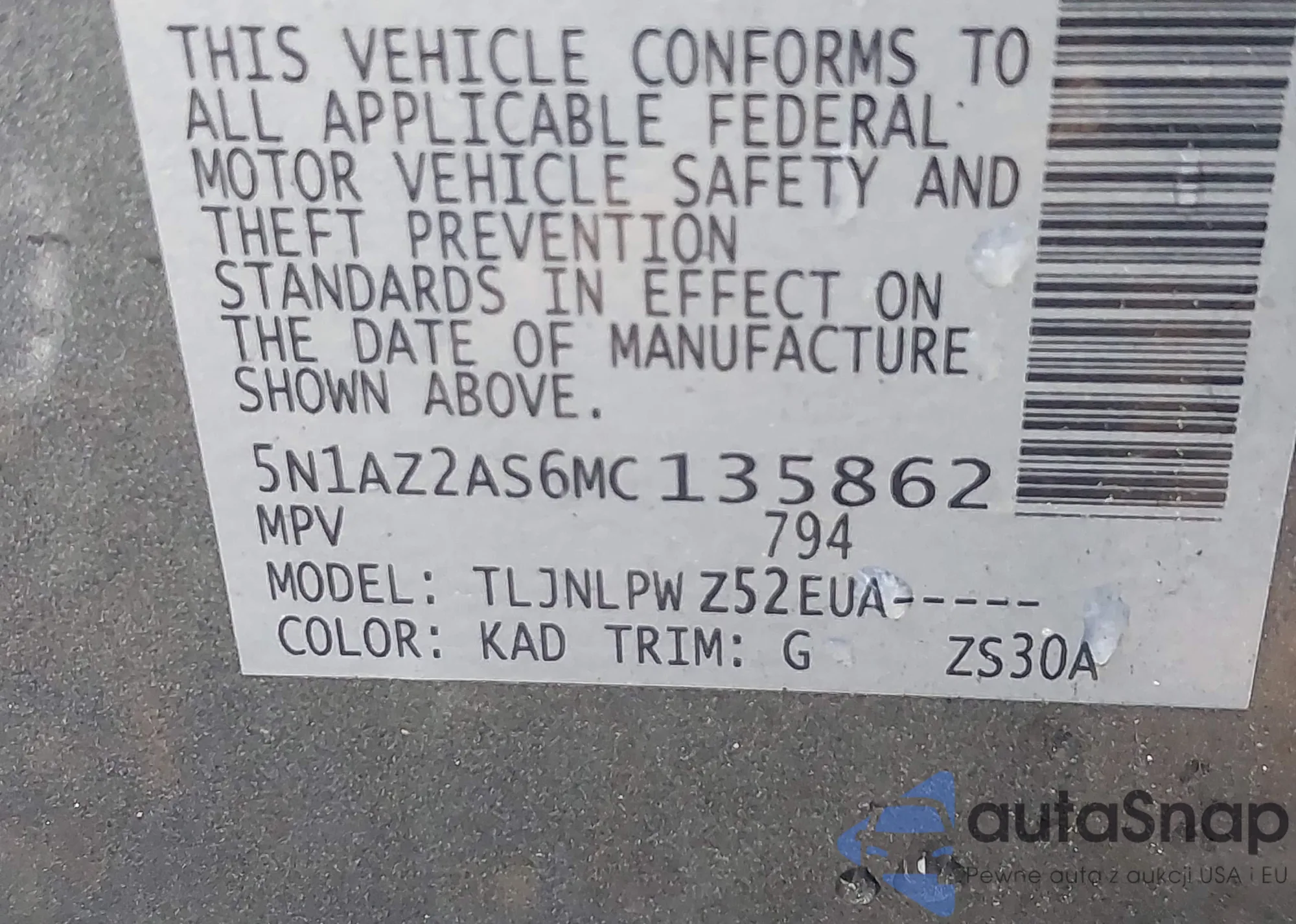 VIN: 5N1AZ2AS6MC135862