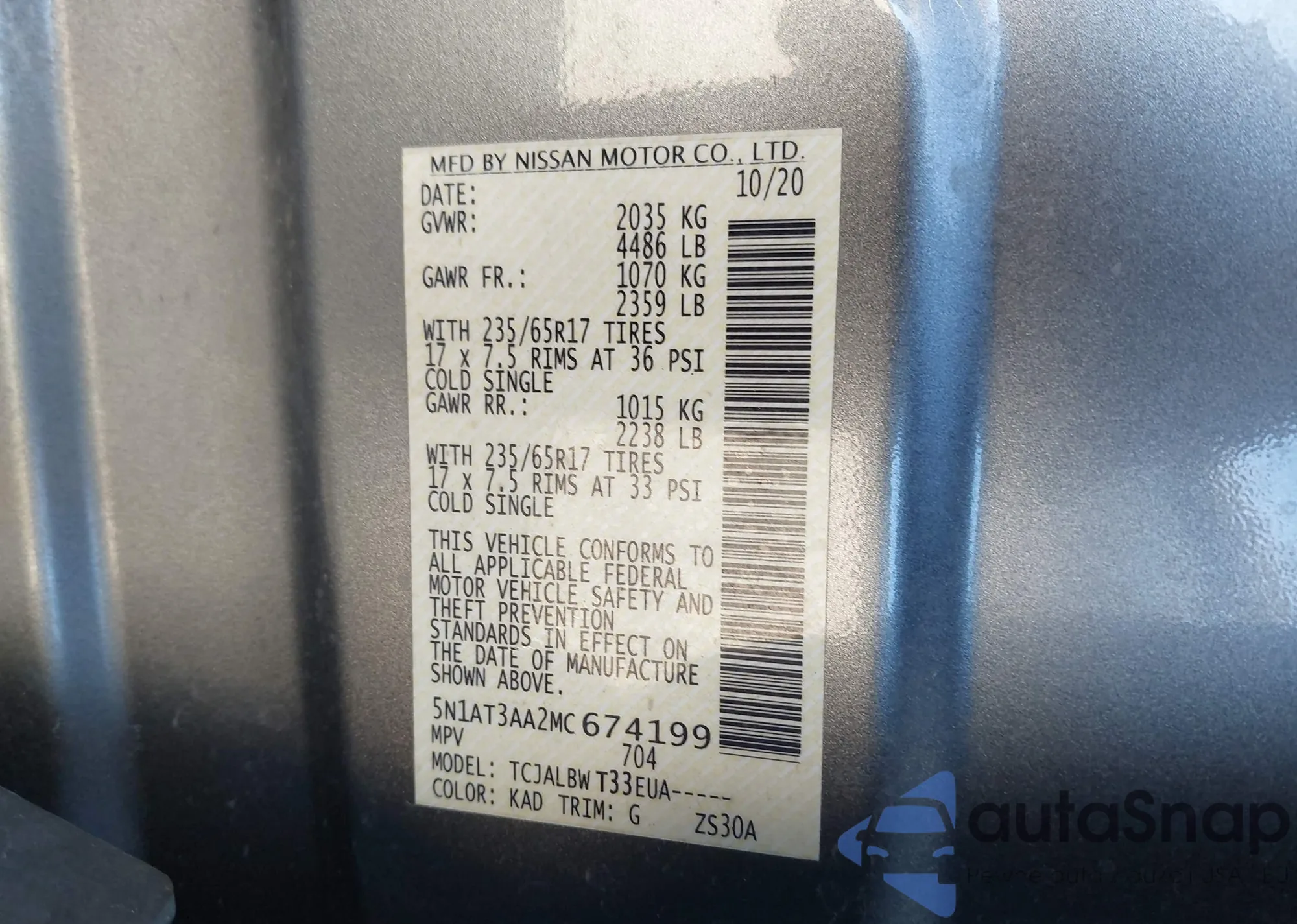 VIN: 5N1AT3AA2MC674199